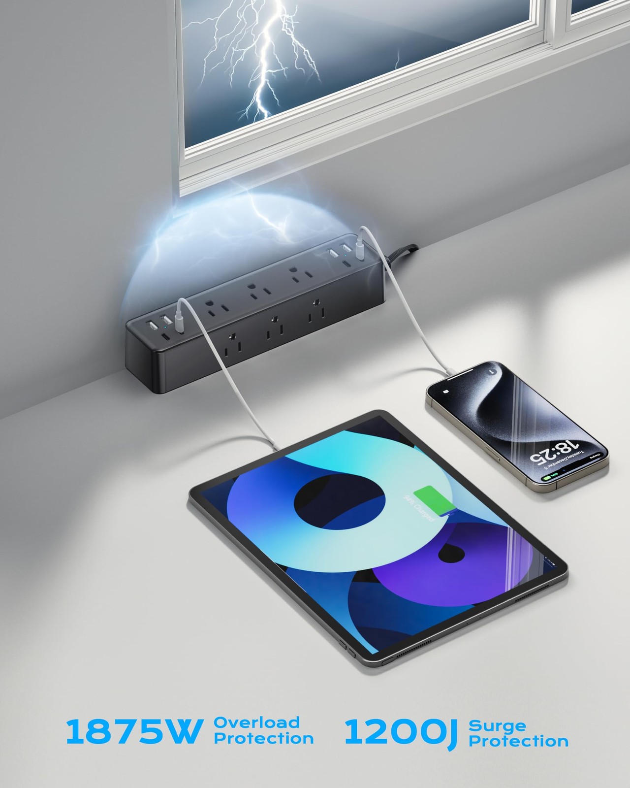 Desk Clamp Power Strip 10FT 9 AC 8 USB Ports 24W Fits 1.7 Inch Edge