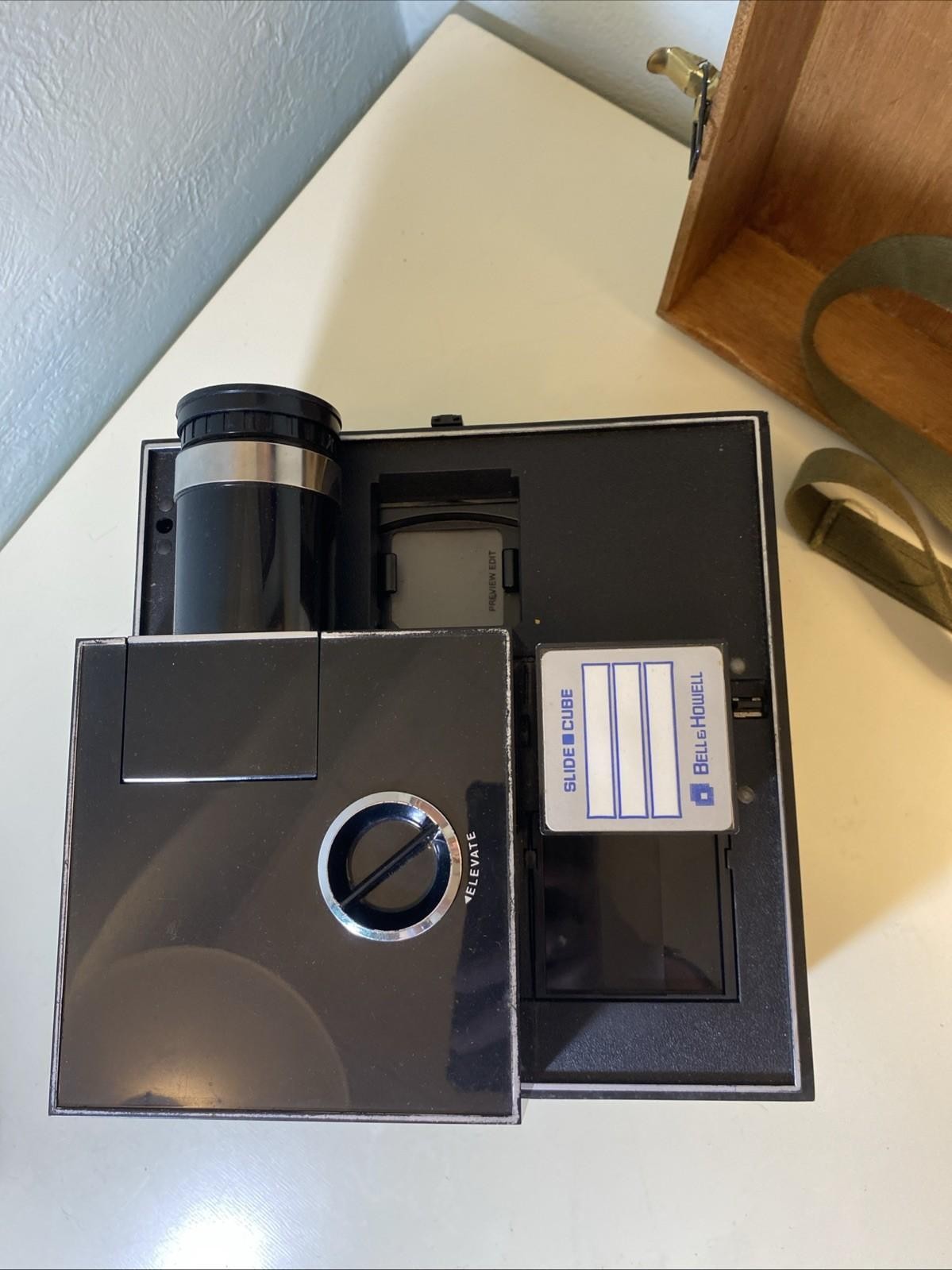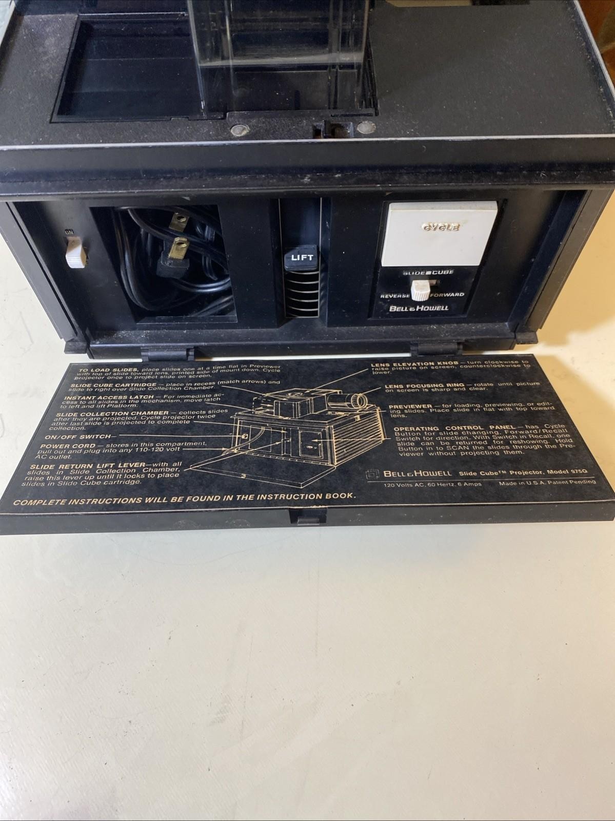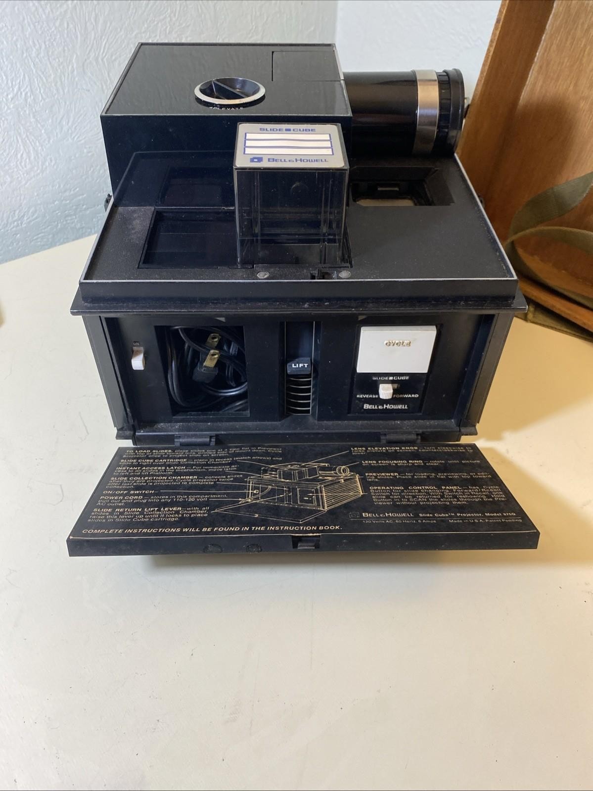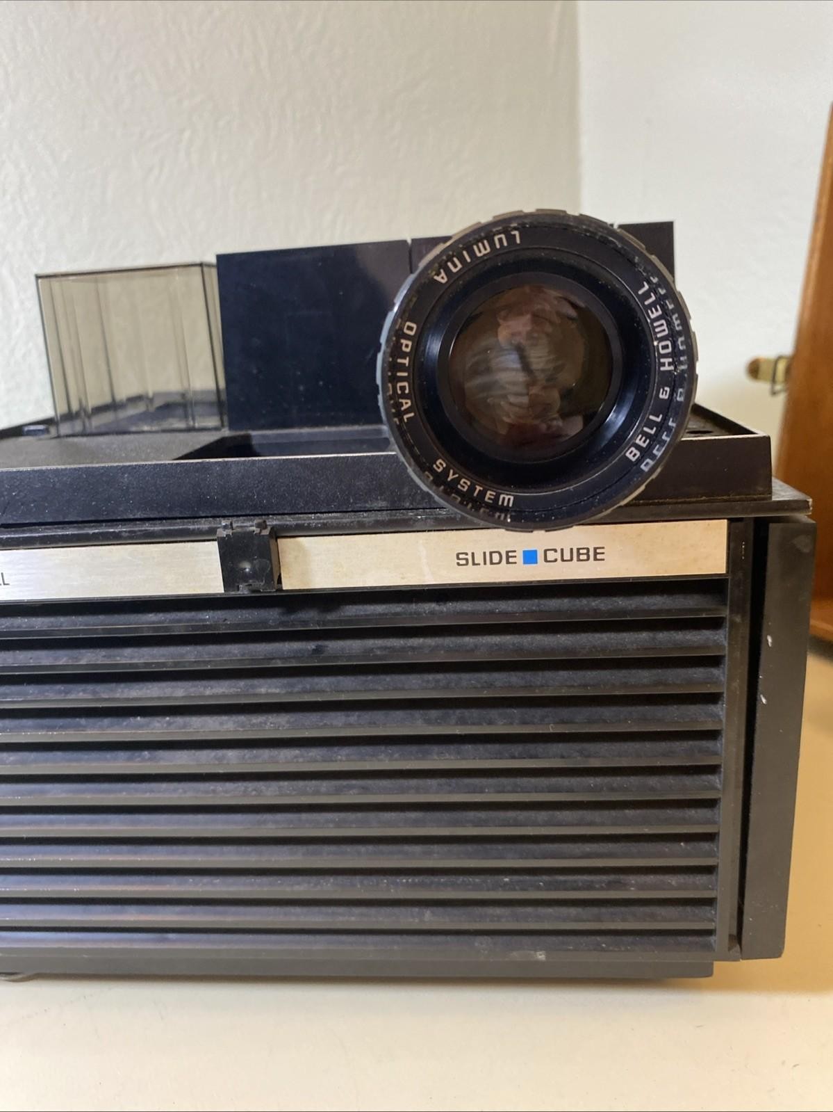 как выглядит VTG Bell Howell Slide Cube 975q Projector With Cover Working Needs New Bulb фото