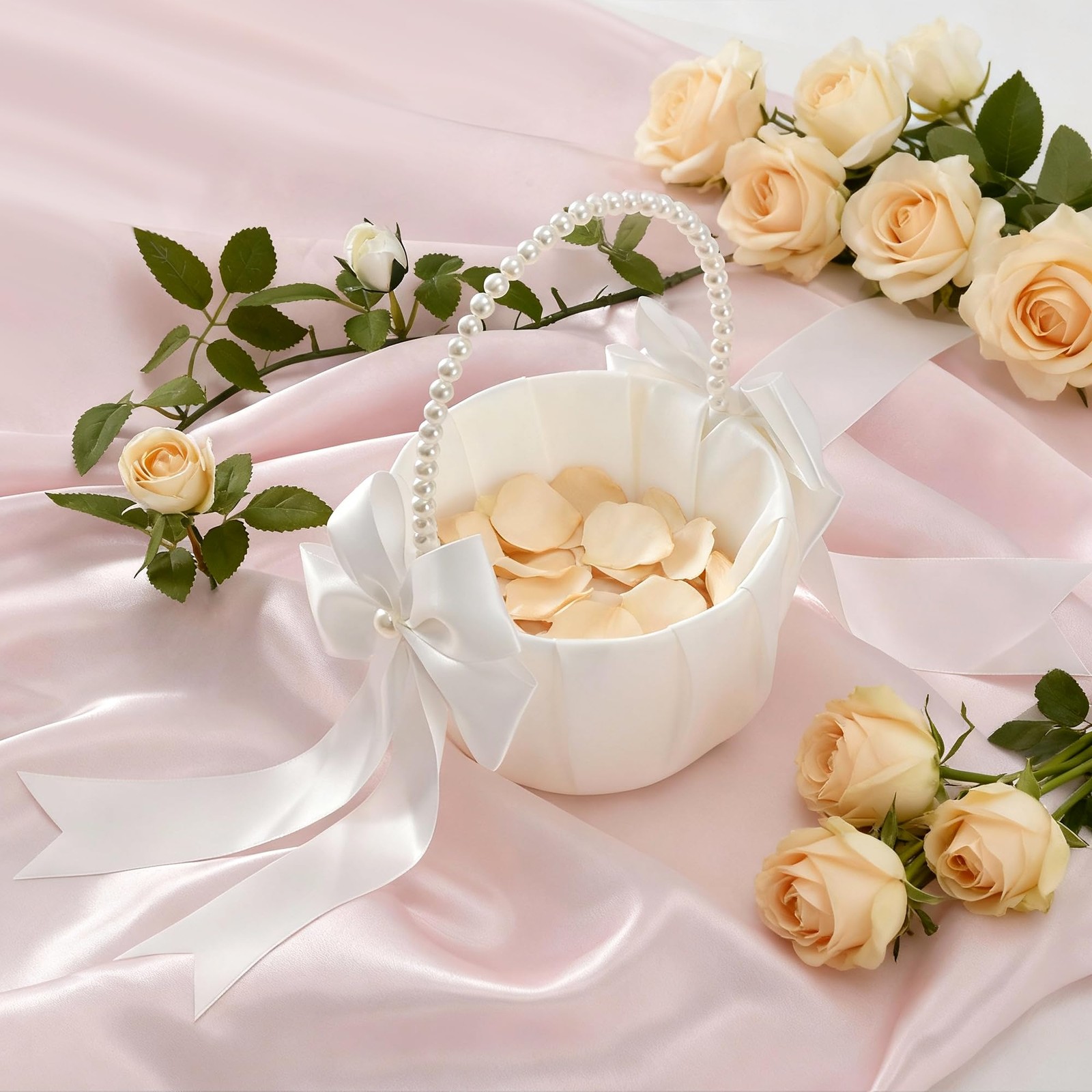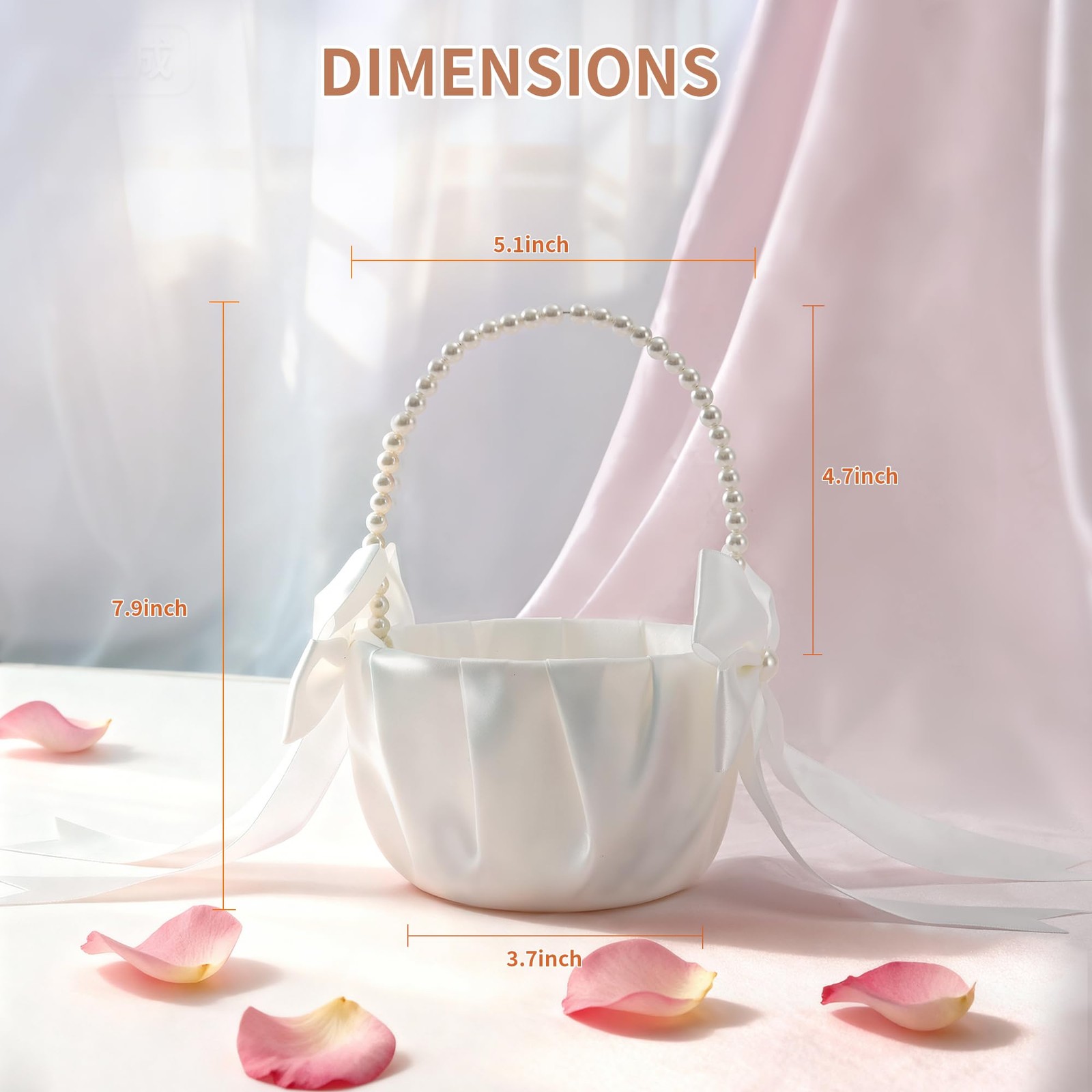 Included Components: Flower Girl Basket, Pearl Handle, Bow Decoration