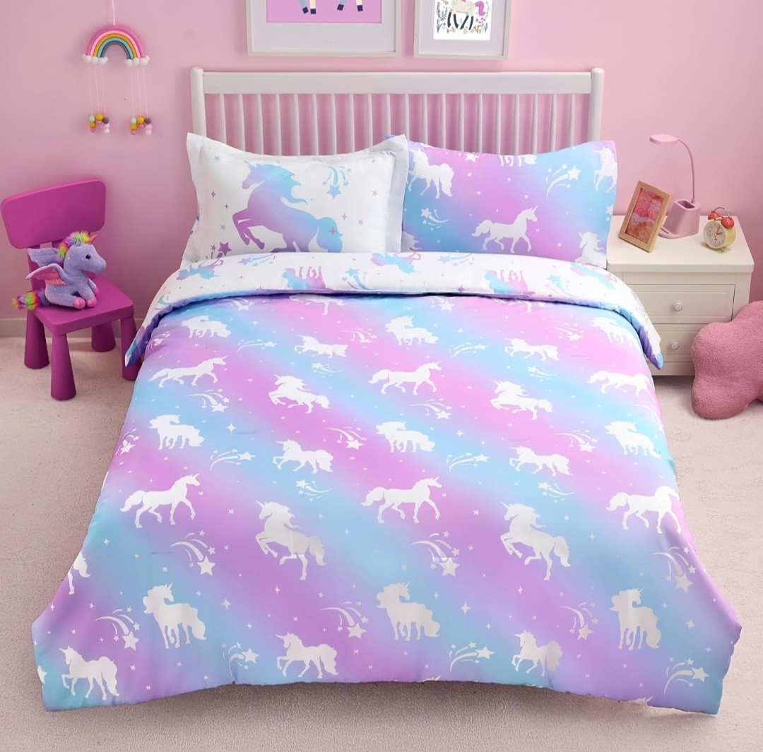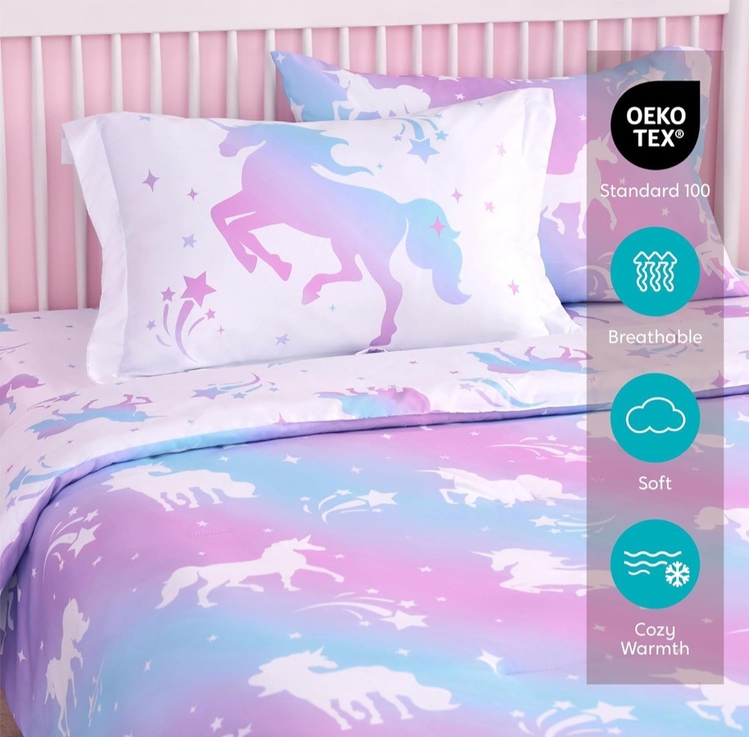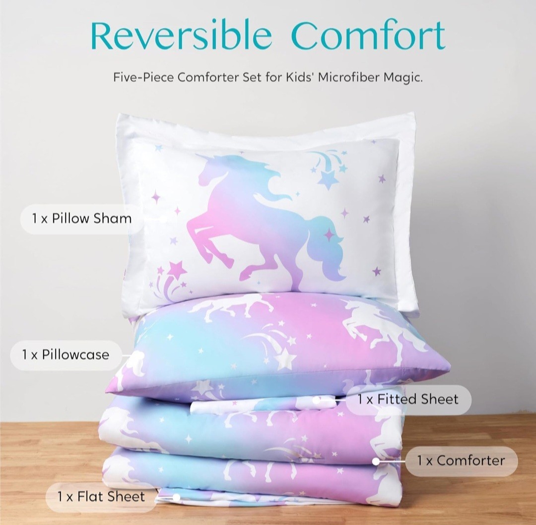 Joiedomi Kid Twin Comforter Set 5 Piece Dream Unicorn Bedding Set for Boys Girls