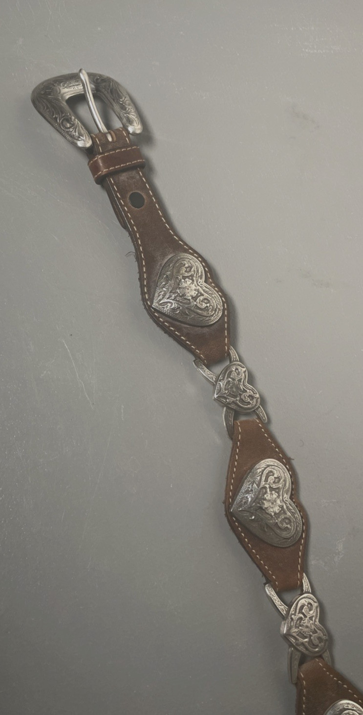 как выглядит Tony Lama Heart Concho Silver Tone Western Brown Leather Belt Size 32 фото