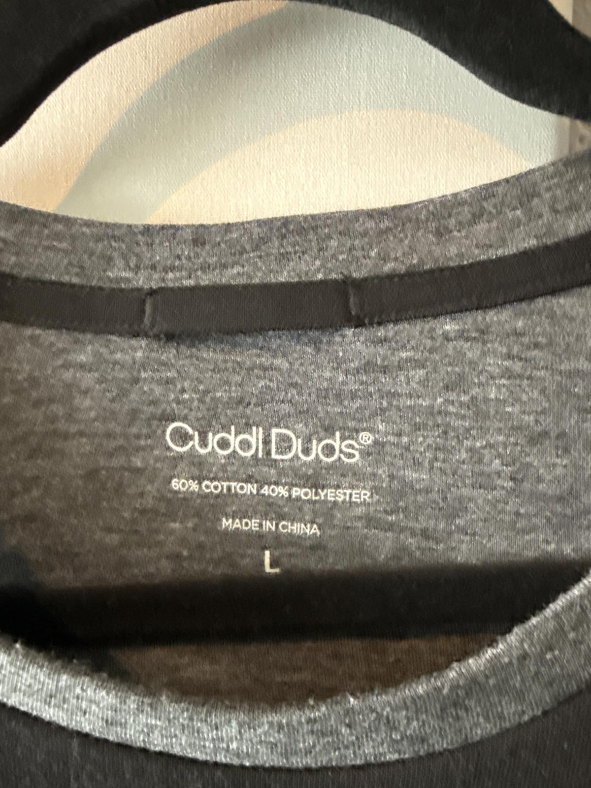 как выглядит Cuddl Duds Black and Gray Long Sleeve Top with Camouflage Lounge Pants Set SizeL фото