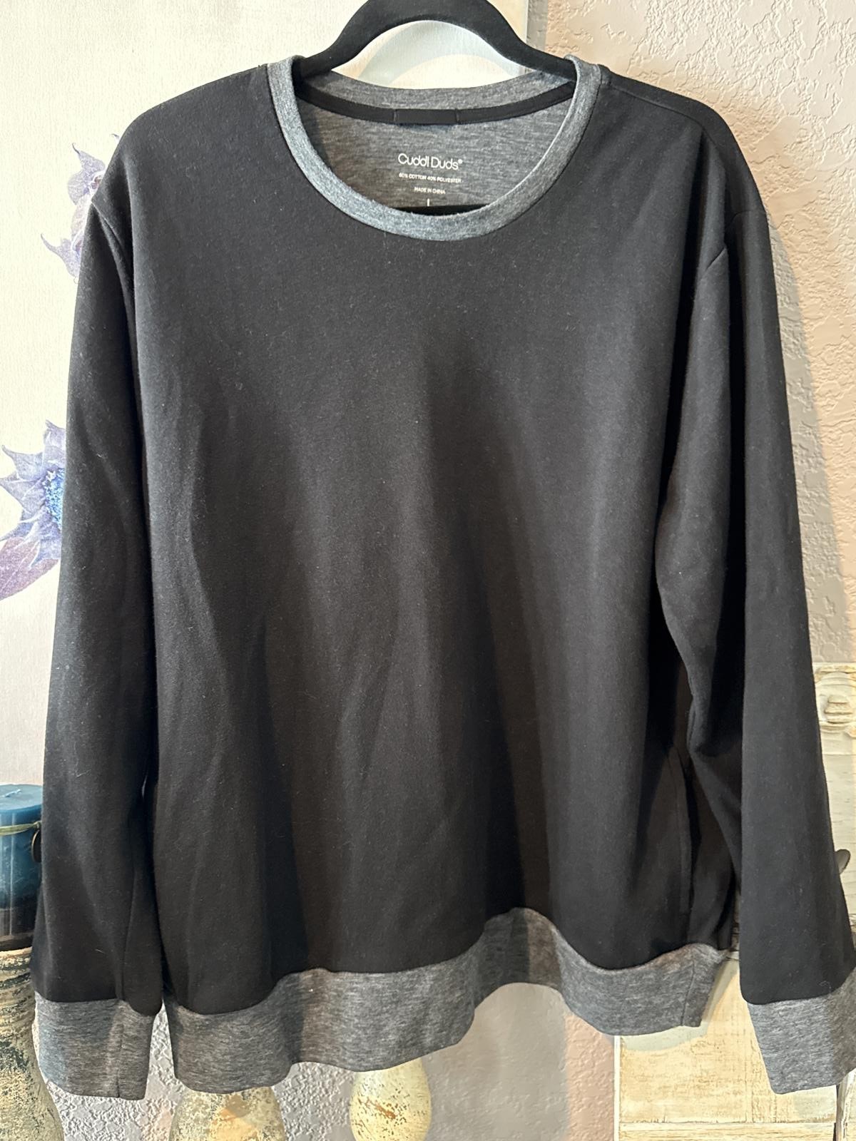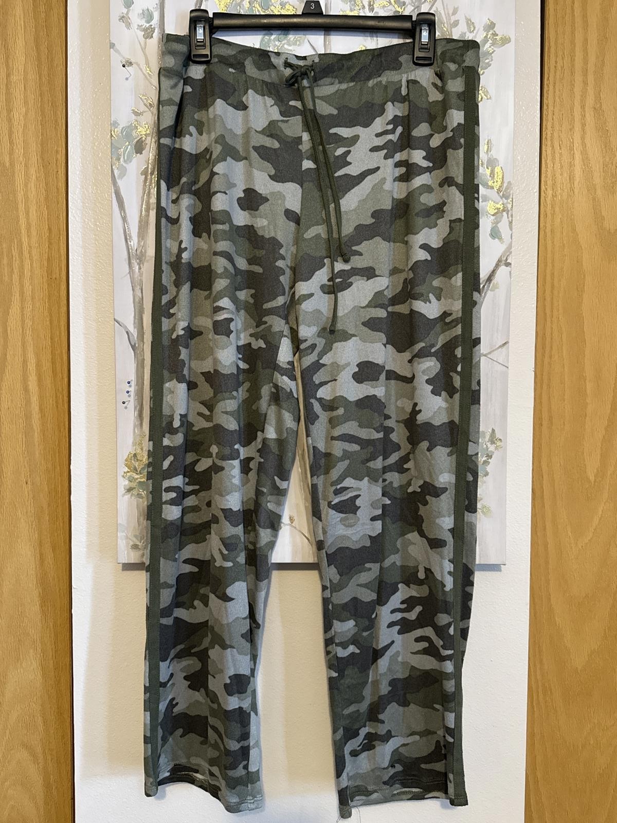 Cuddl Duds Black and Gray Long Sleeve Top with Camouflage Lounge Pants Set SizeL