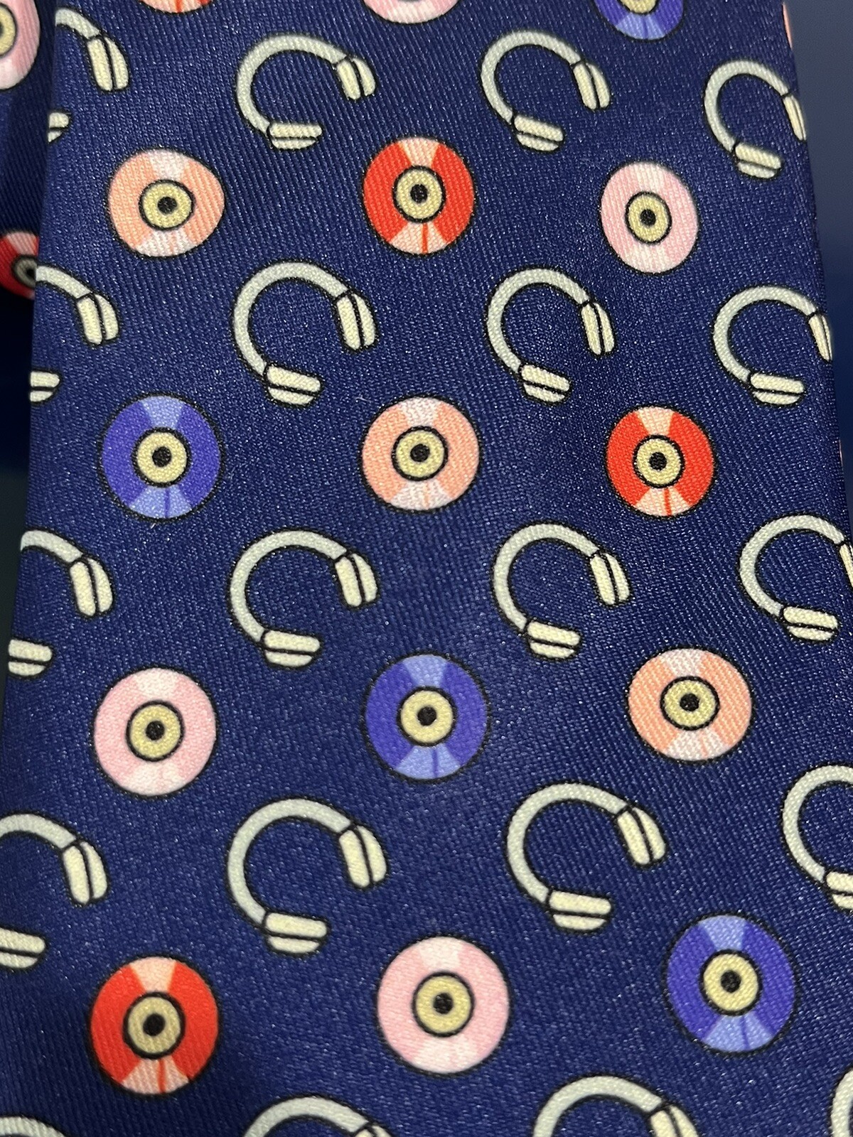 как выглядит Nicole Miller CD Record Headphones Polyester Mens Tie Blue Pink Red Vtg 00s Y2K фото