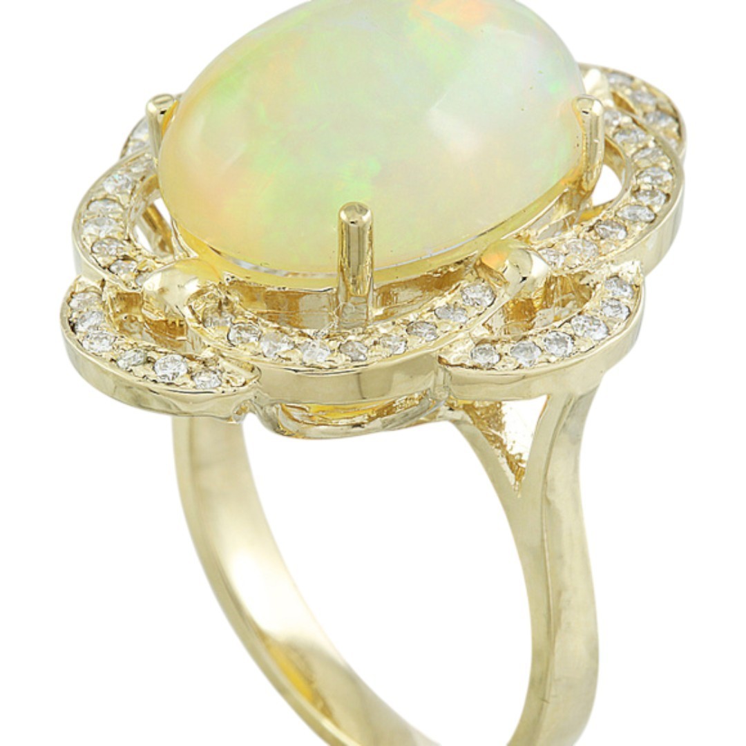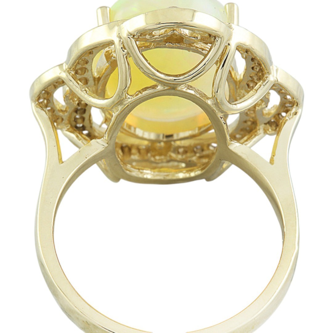 как выглядит 7.00Ct Natural Ethiopian Opal and Diamond 14K Solid Yellow Gold Ring фото