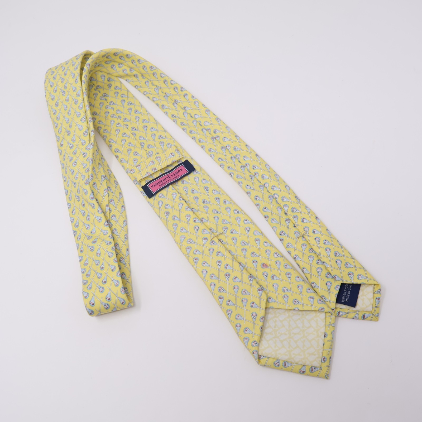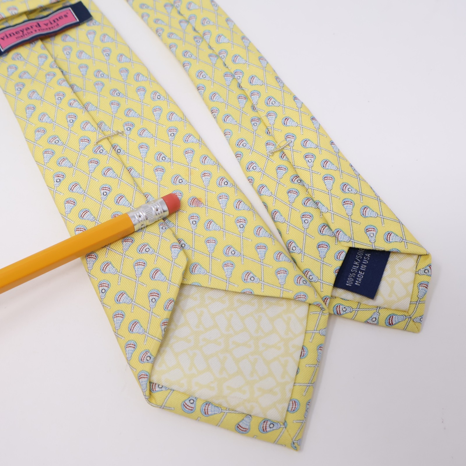 Vineyard Vines Tie Boys Youth Lacrosse Yellow Print Silk