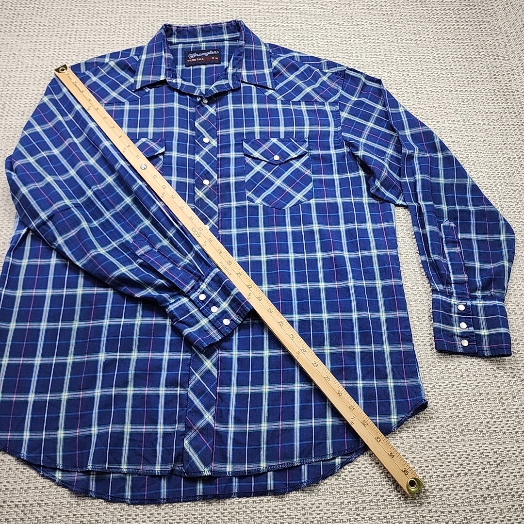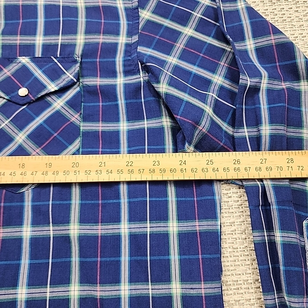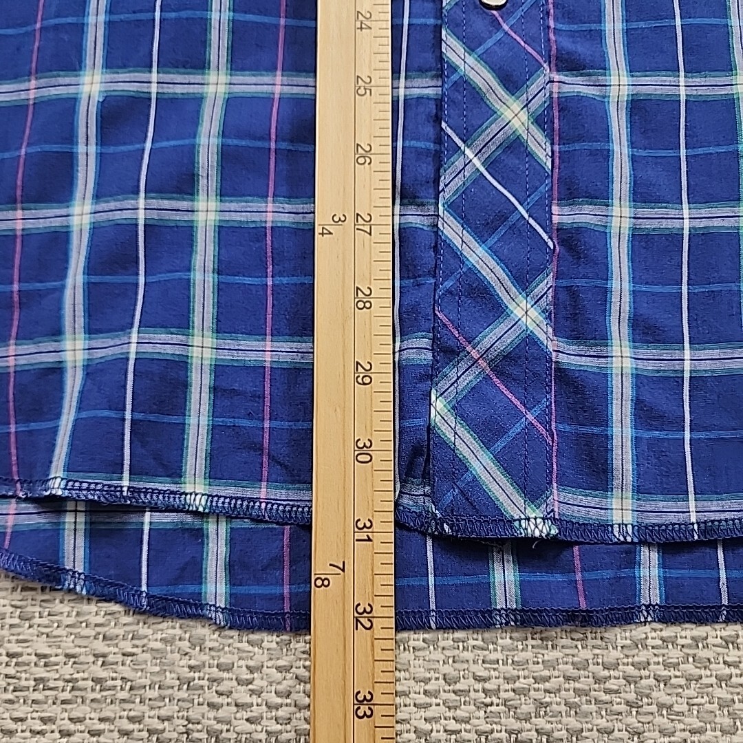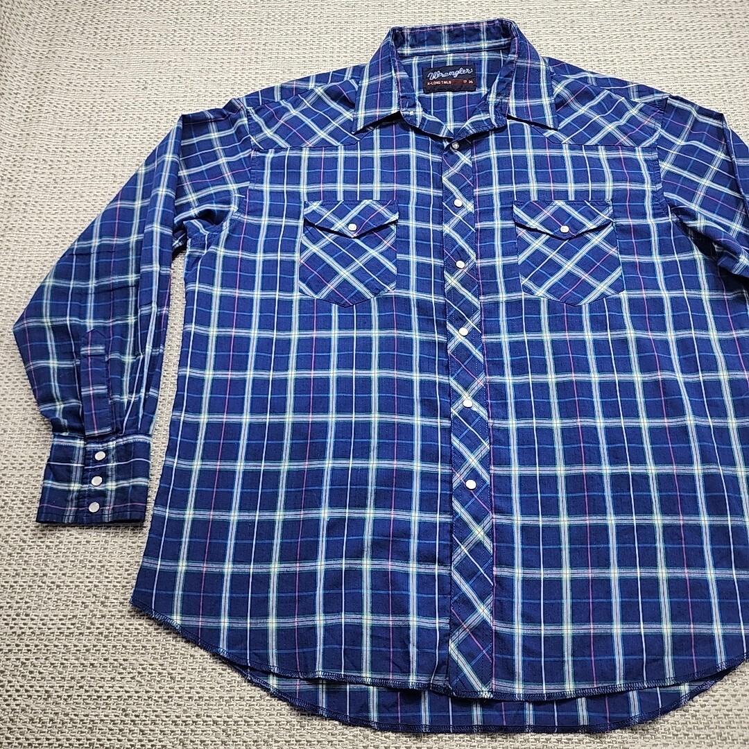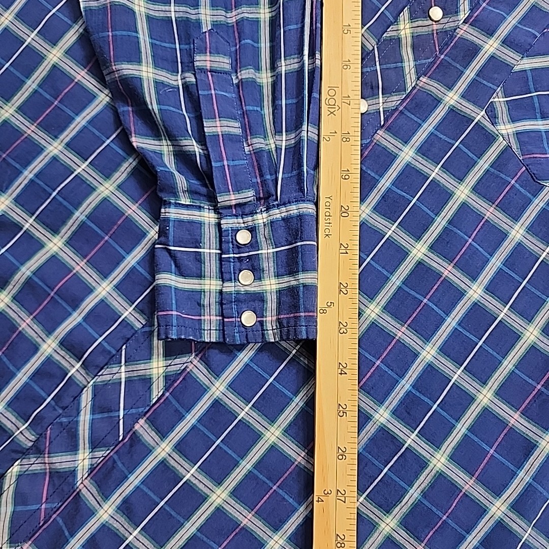 Wrangler Mens Regular Fit X Long Tails Blue Plaid Pearl Snap Shirt 17 x 35