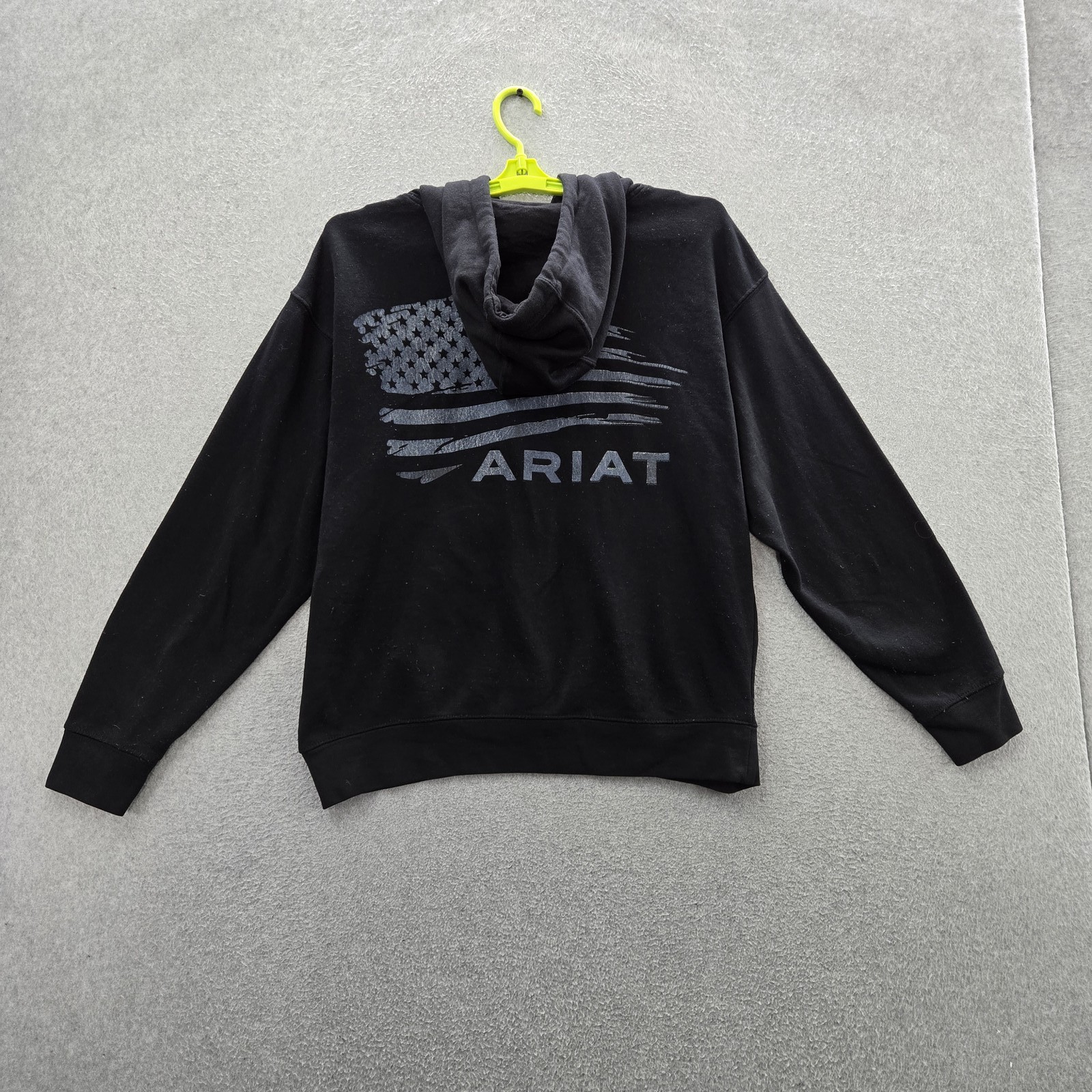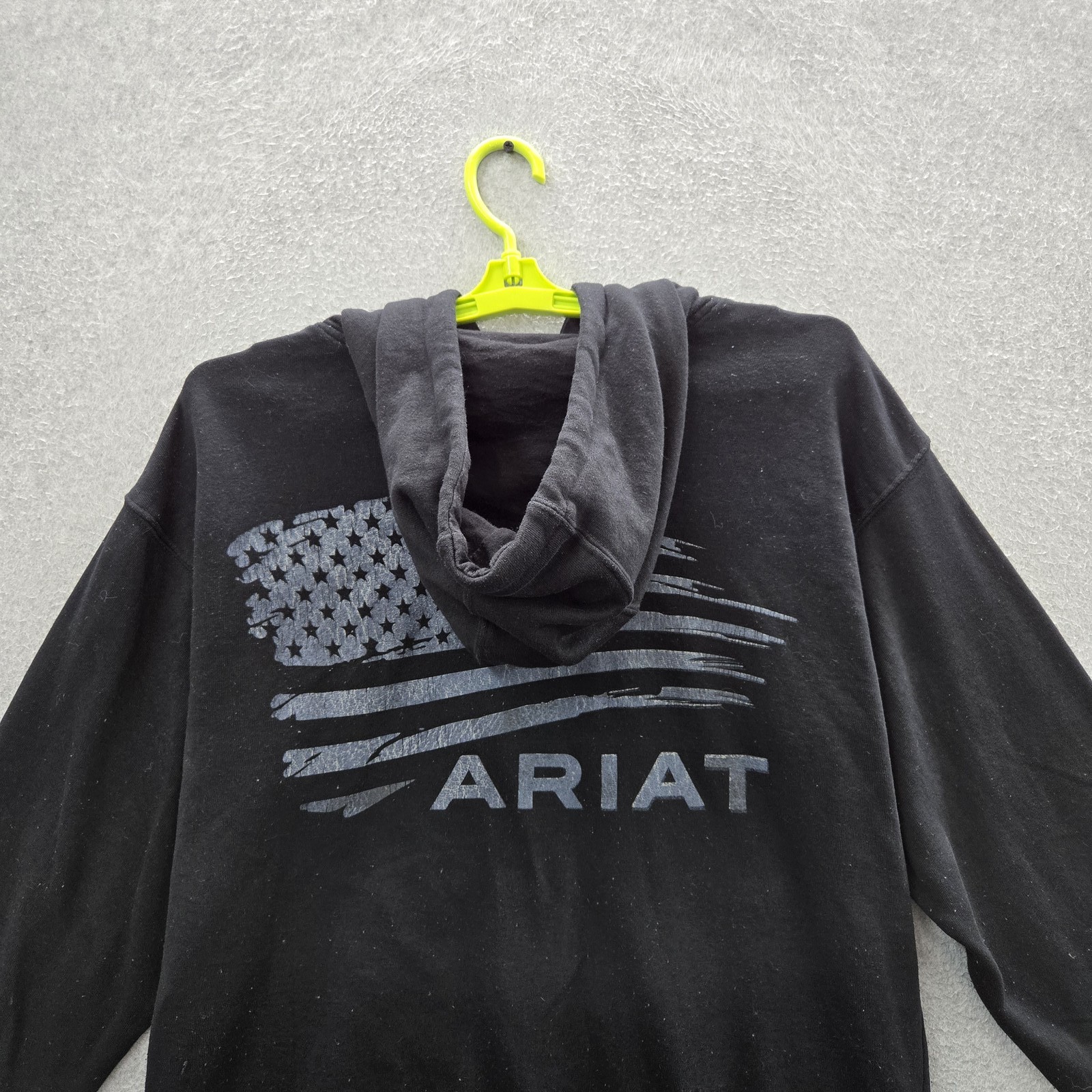 как выглядит Ariat Men Hoodie M Black Graphic Fleece Flag Activewear Logo Long Sleeve фото
