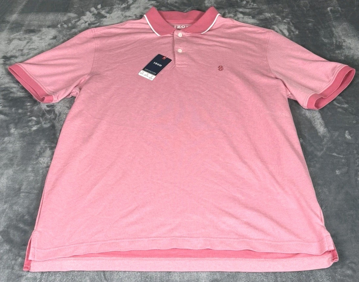 как выглядит New Mens Izod Polo Shirt Advantage Performance Pink Colorblock Stretch Flex Lg фото