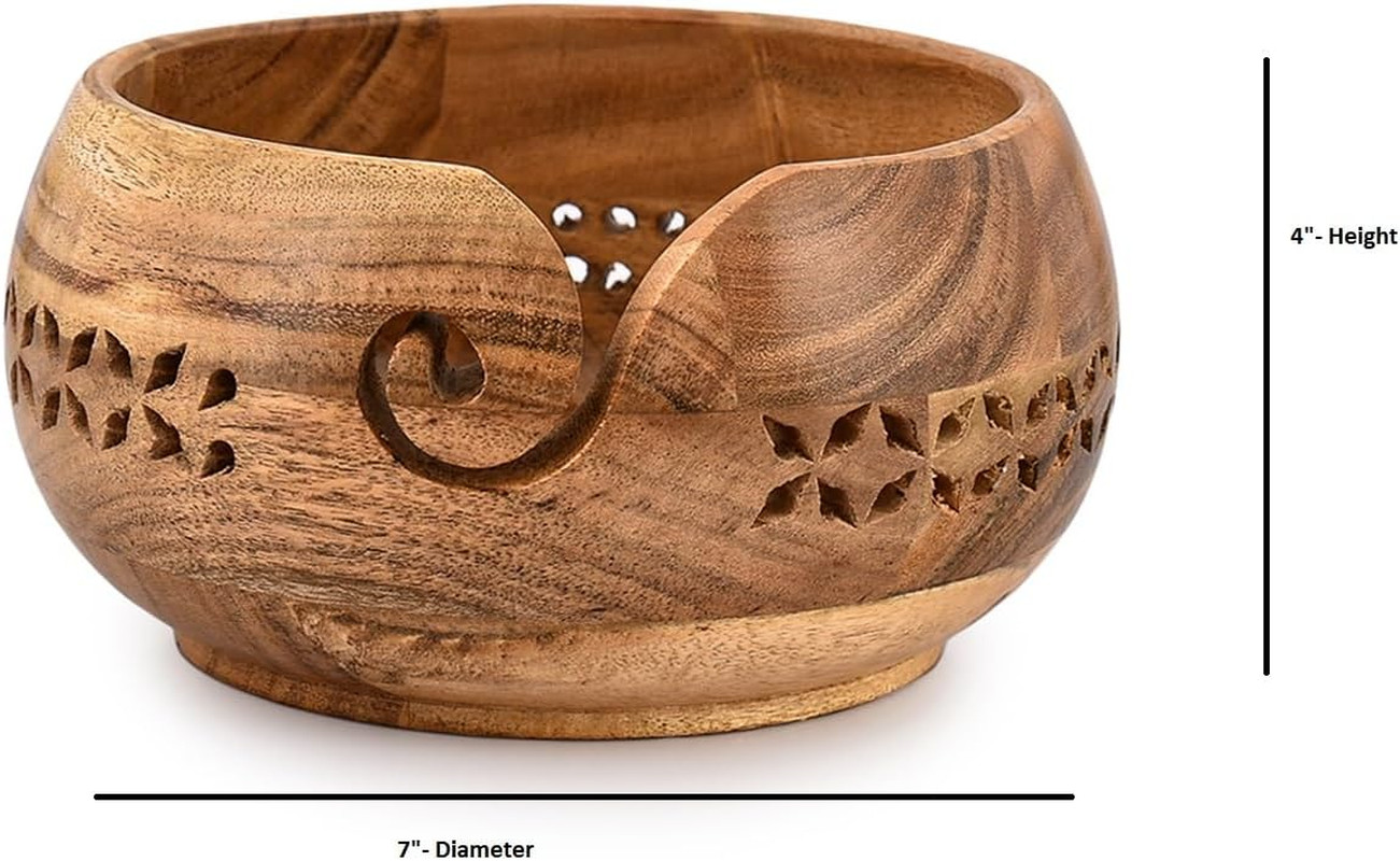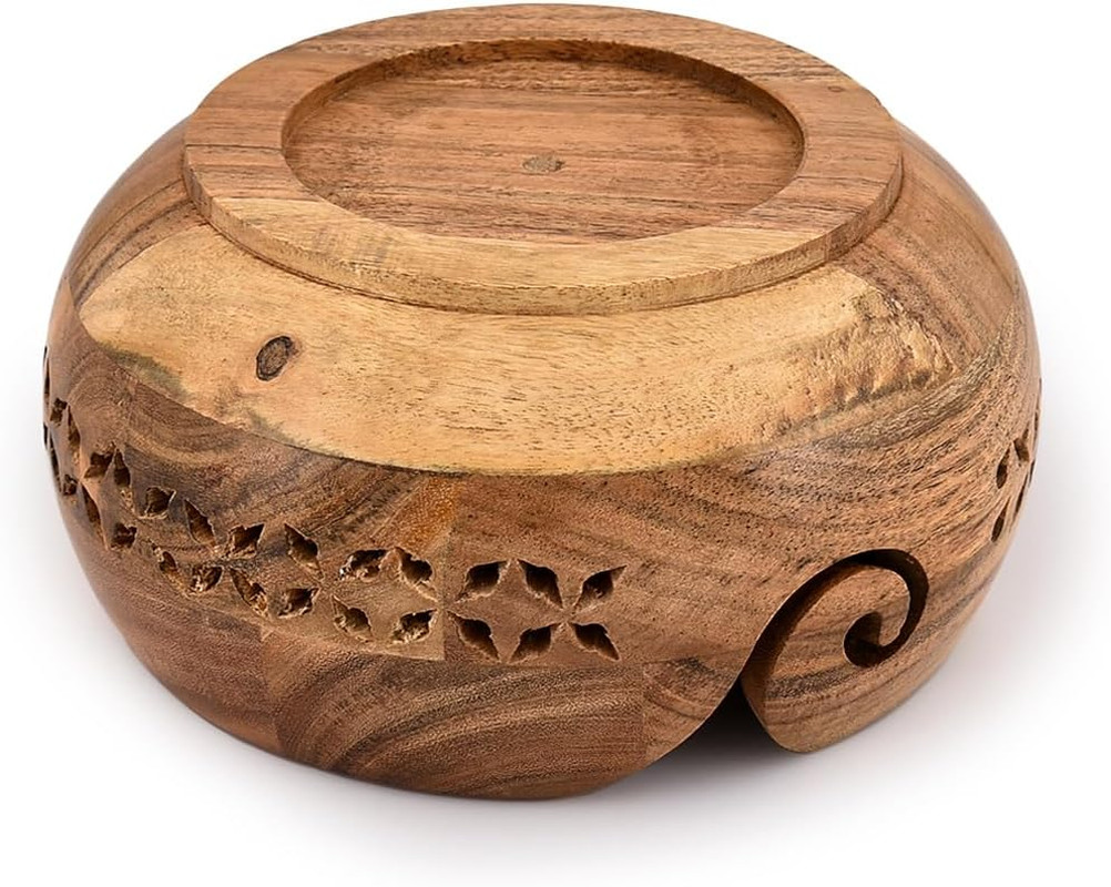 Acacia Wood Yarn Bowl Holder Handmade Crocheting Accessories and Supplies Organ
