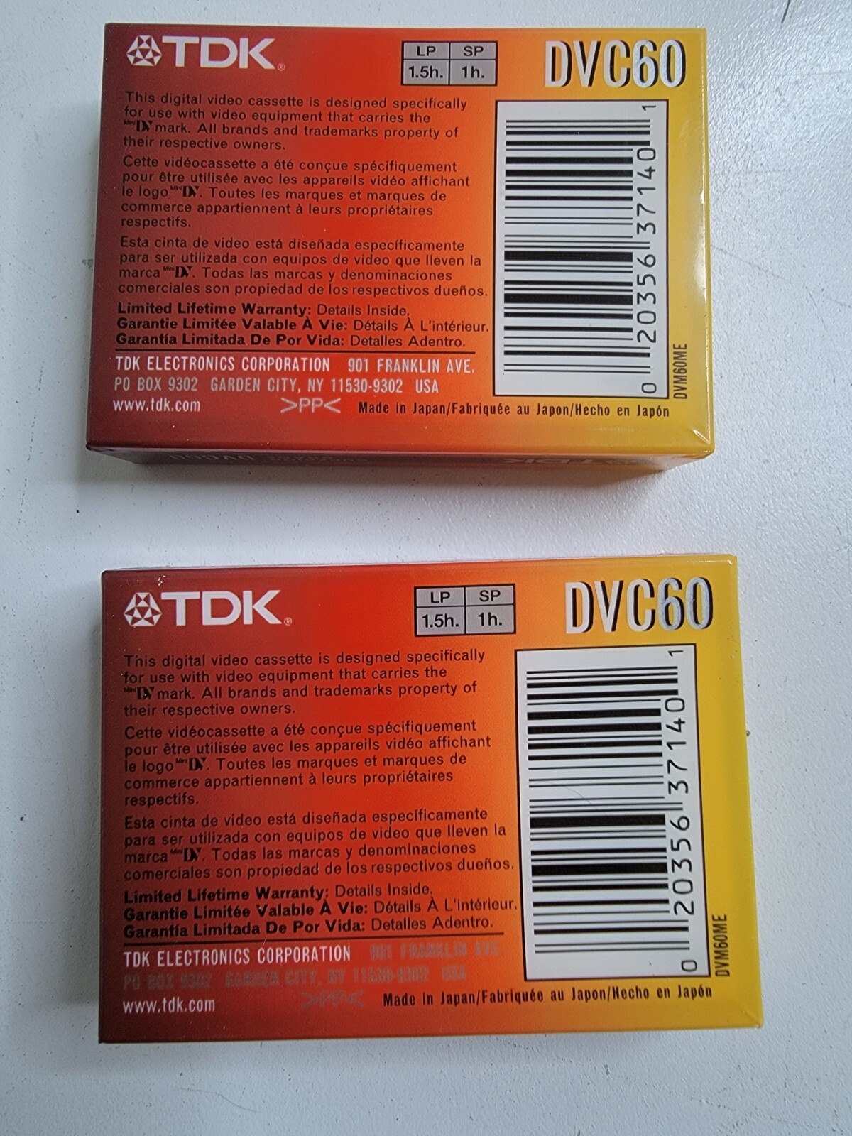 TDK Digital Video Cassette for Camcorders 60 Minute Tapes Lot of 2 Sealed