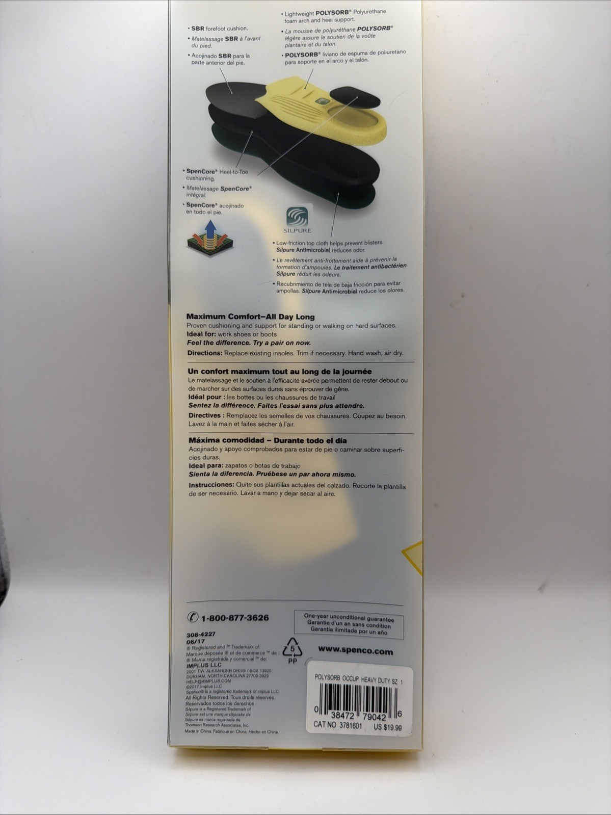 Spenco PolySorb Heavy Duty Shoe Insoles Size 1 Women s 5 - 6.5 New