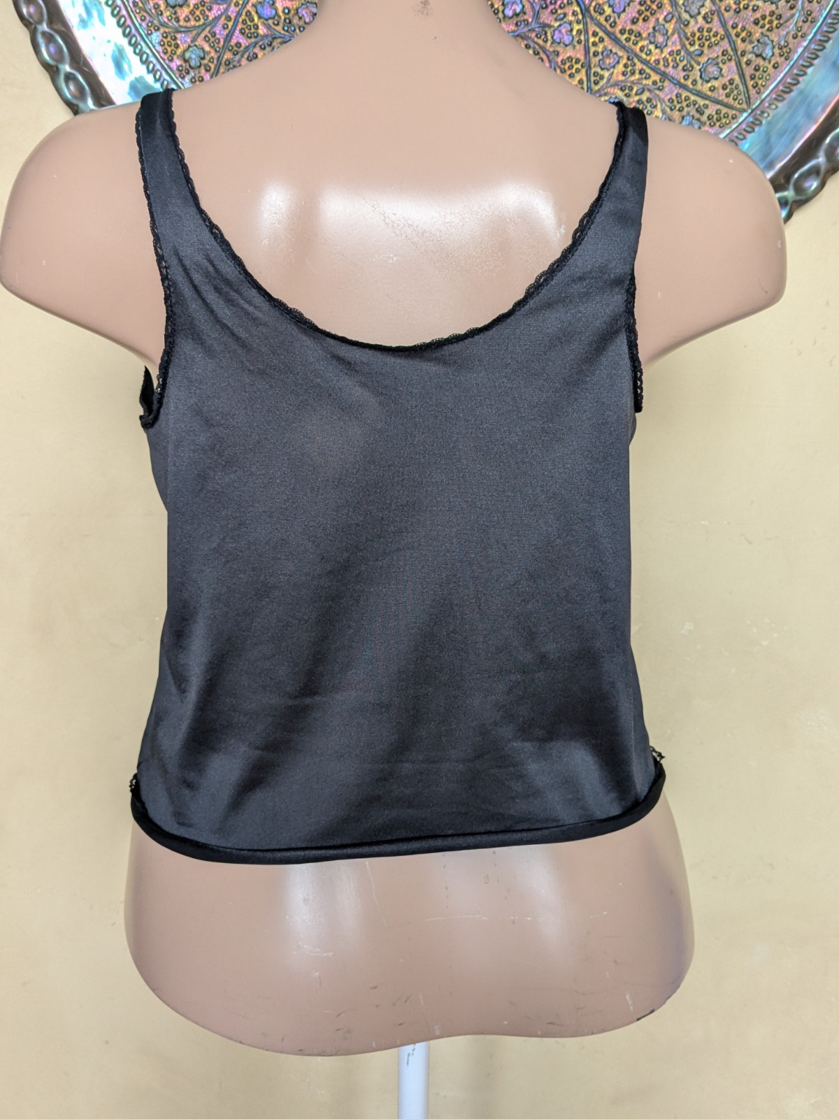 как выглядит Vintage Vassarette Black Lacy Satiny Camisole Top Lingnerie Size 38 фото