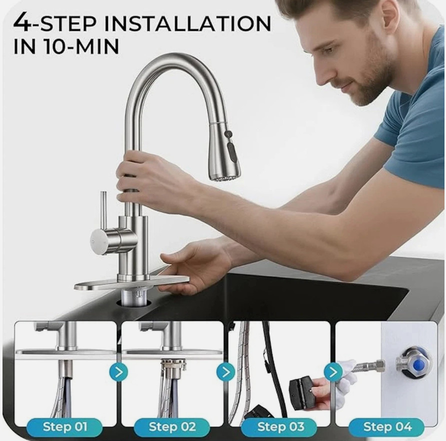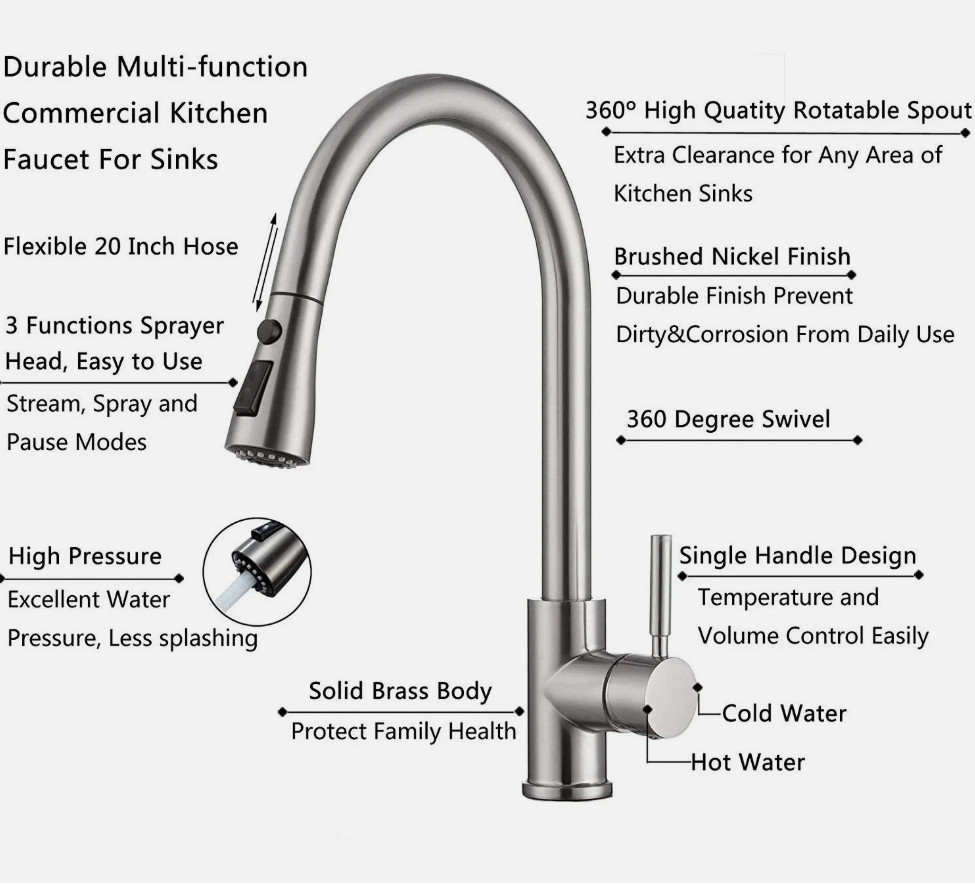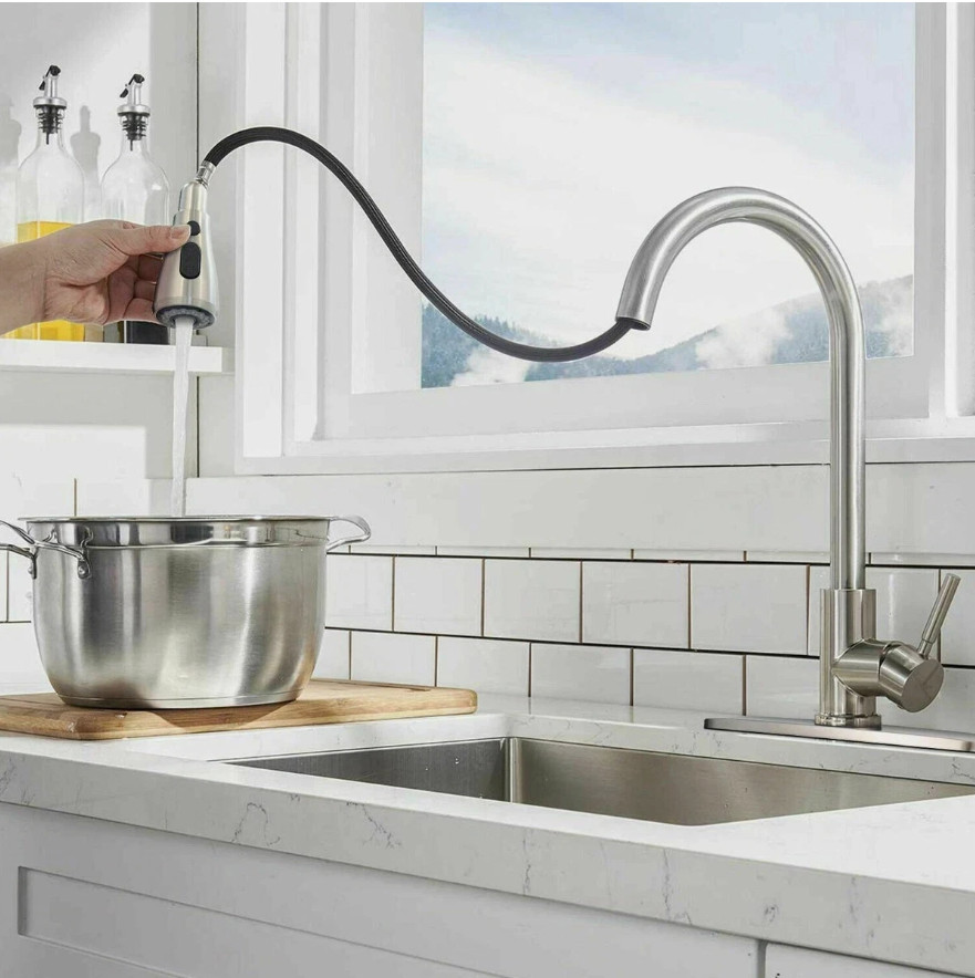 как выглядит Modern Luxury Pull-Down Kitchen Faucet with Multi-Mode Sprayer, High-Arc Handle фото
