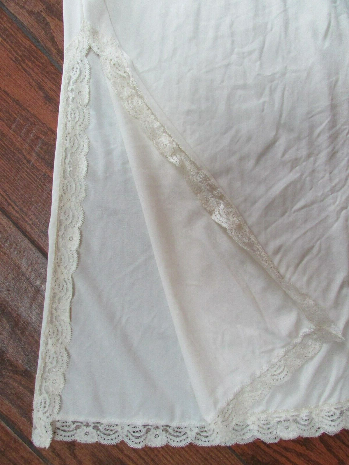 как выглядит Vintage Shadow Line 39" Long Maxi Beige Half Slip Nylon 18" Side Slit Size S фото