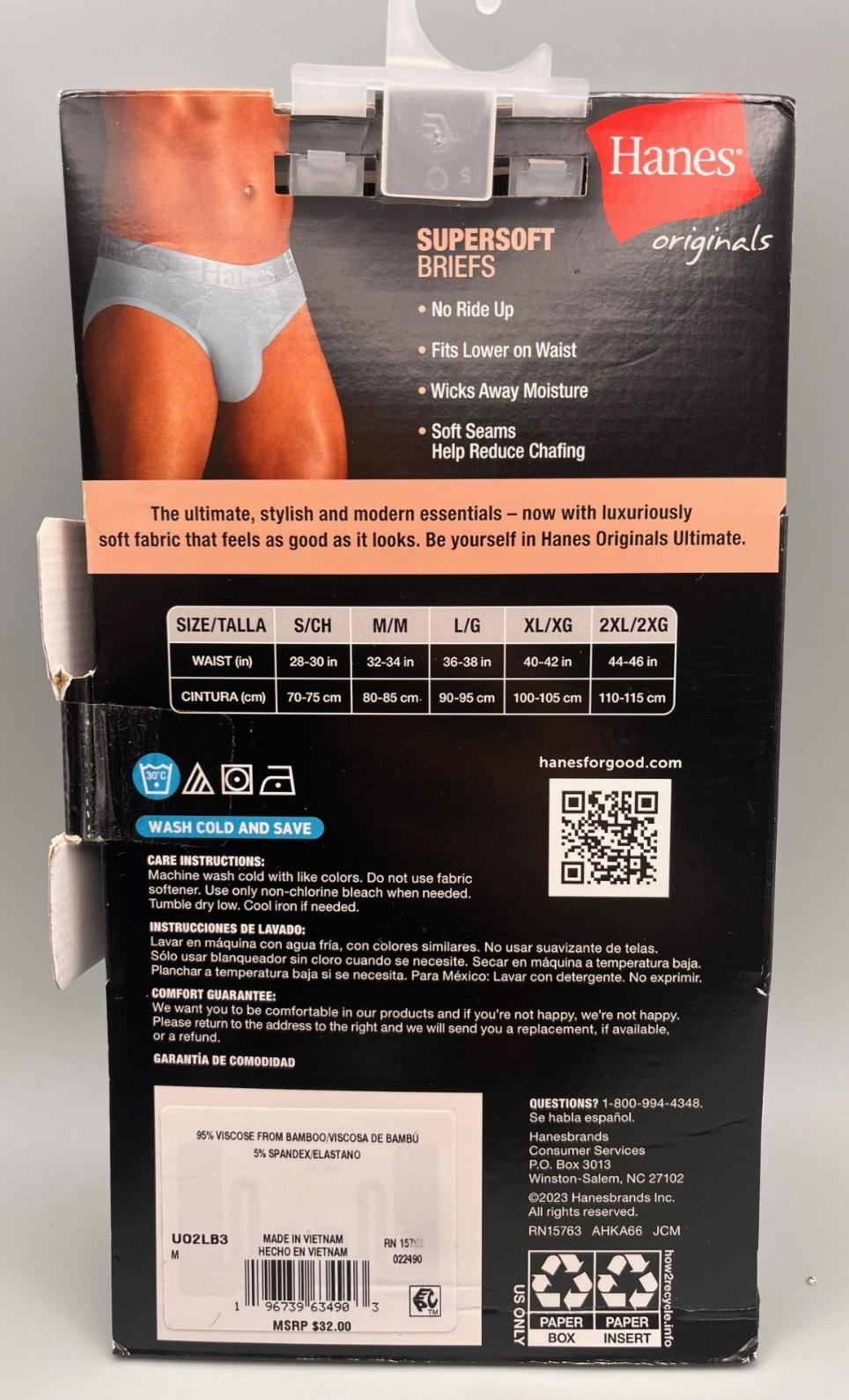 Hanes Originals Ultimate Men's 3 Super Soft Briefs Medium Blue / Black New