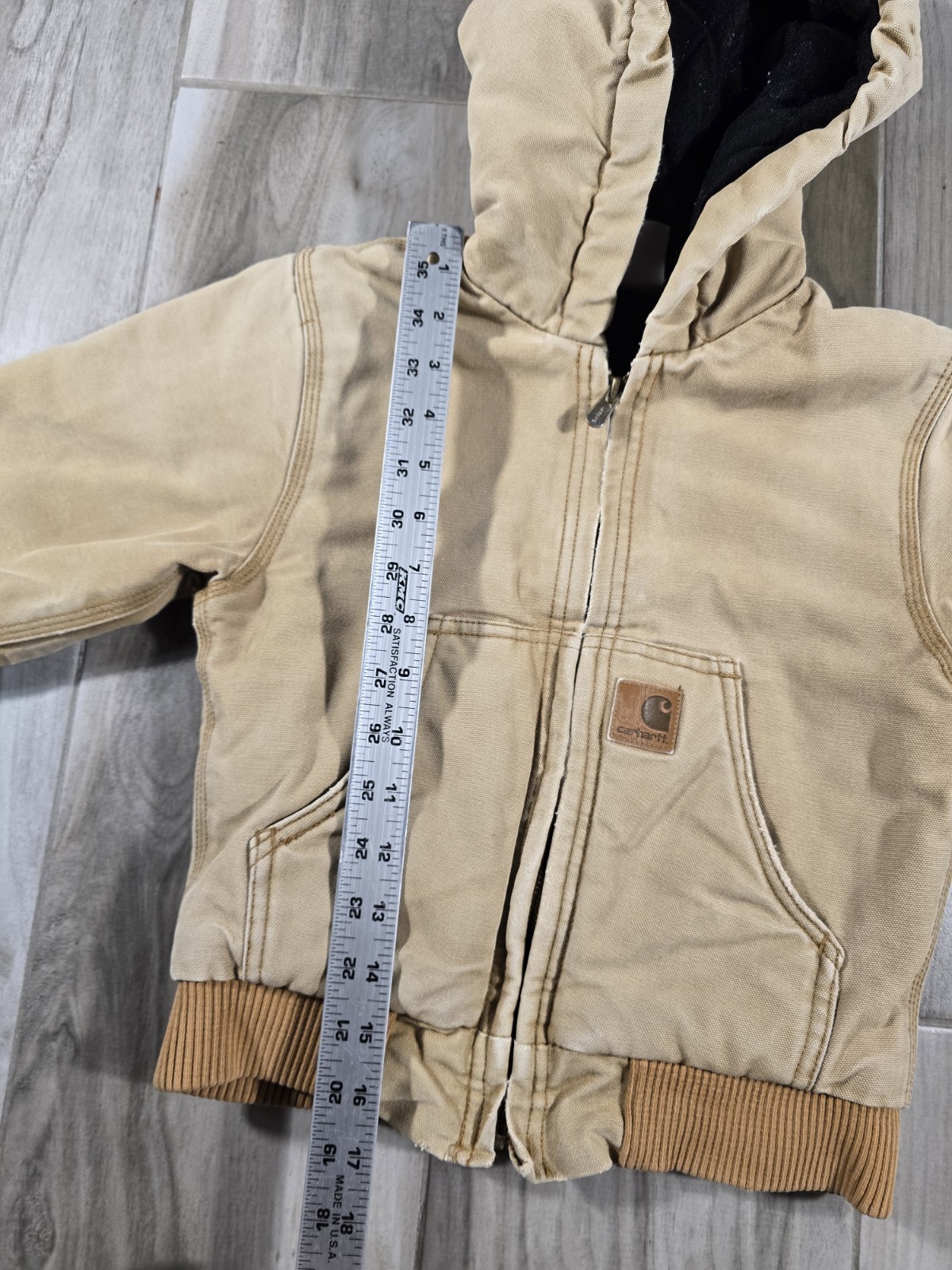 Carhartt Distressed Faded Canvas Hooded Insulated Work Jacket Kids XXS 4/5