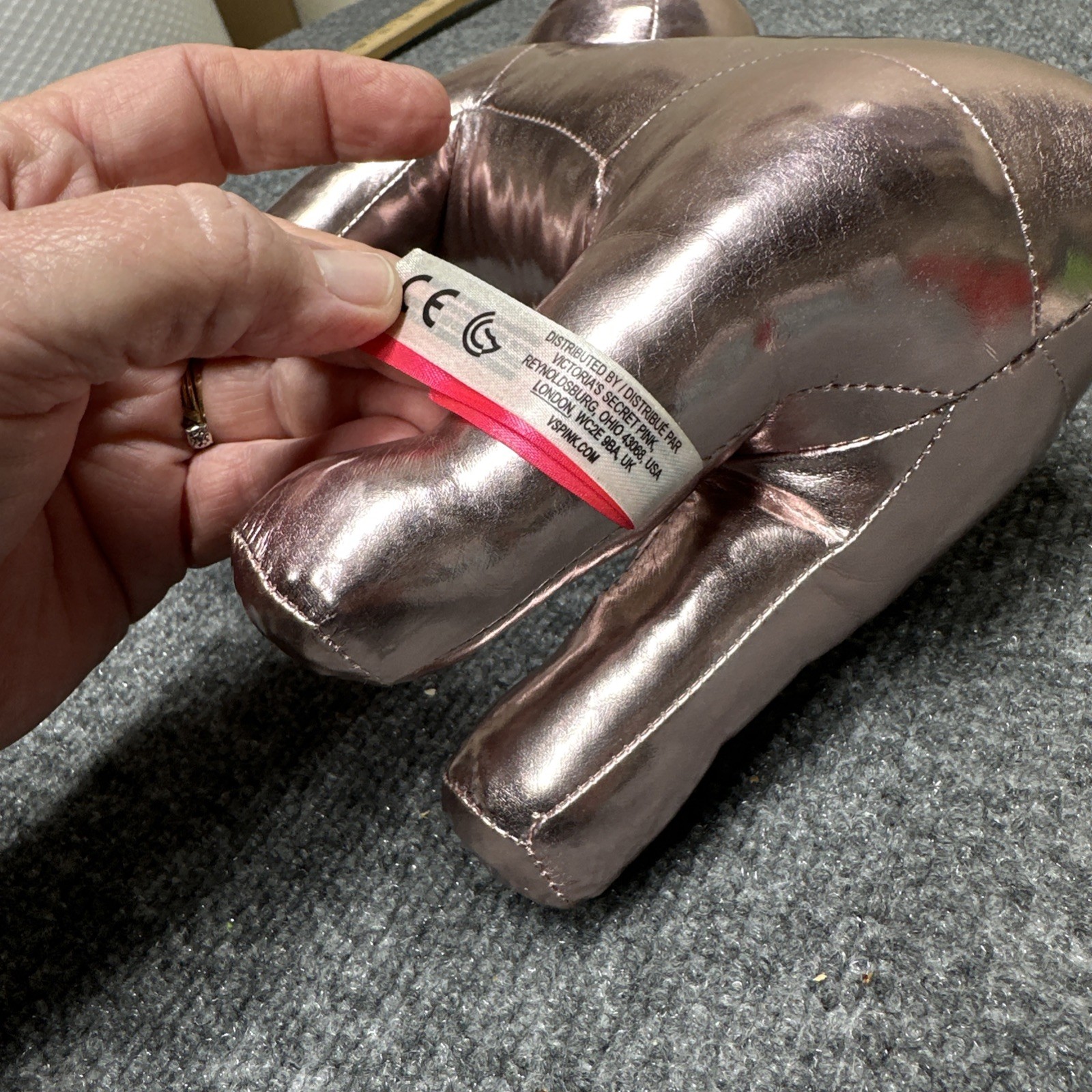 как выглядит Victorias Secret 10" Large Pink Dog Metallic Rose Gold Puppy Plush Limited Ed фото