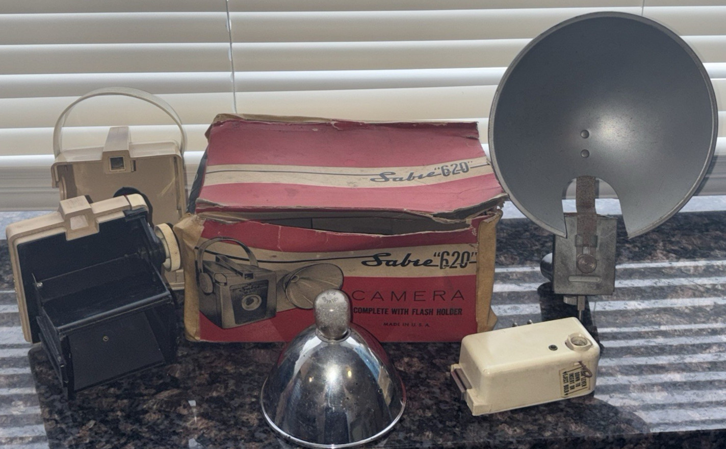 VINTAGE 1950s SABRE 620 CAMERA With Box Extras L K Super CHEAP