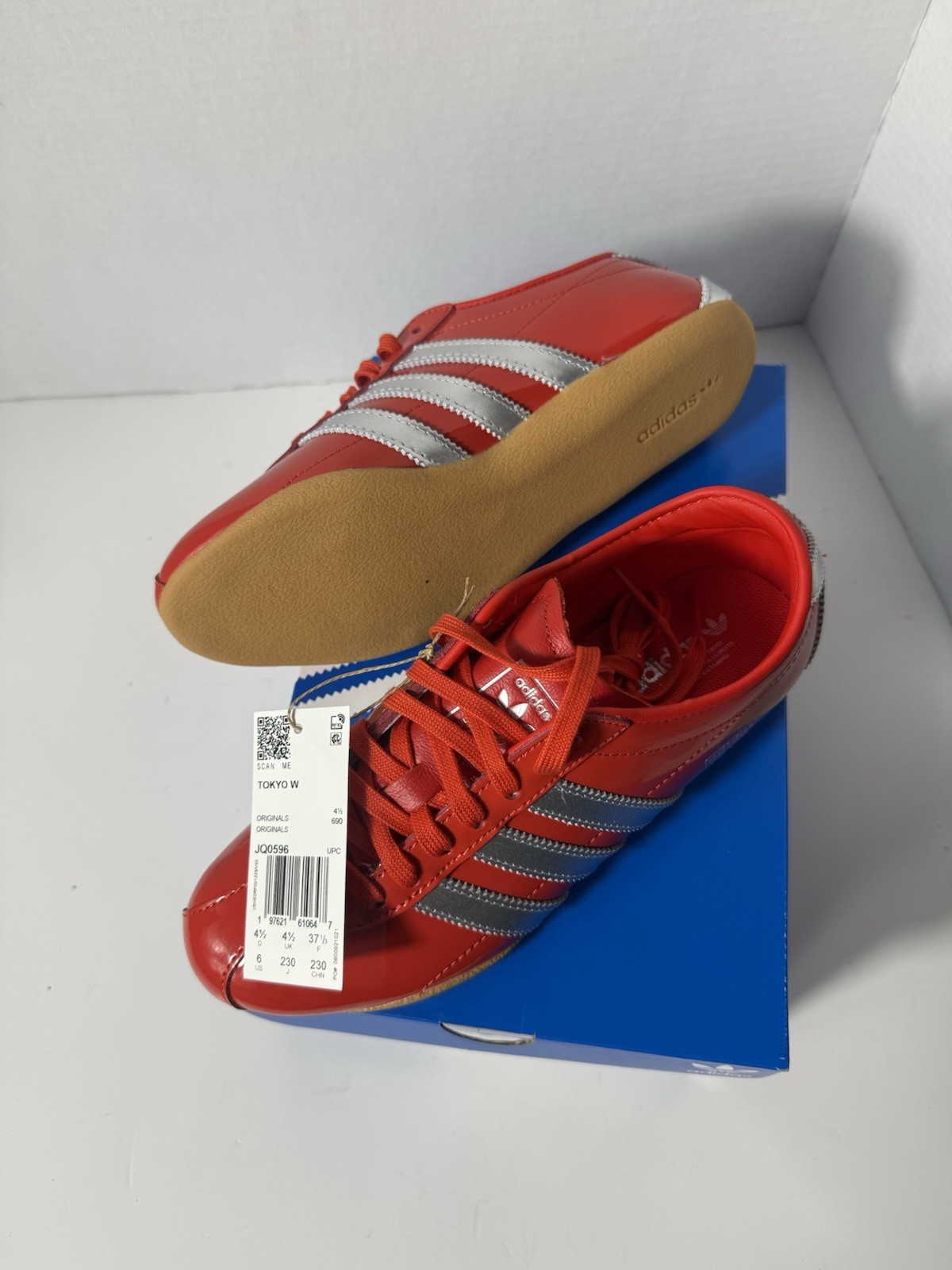 Adidas Tokyo JQ0596 Gloss Red Silver Stripes Classic Low Top Shoes New W Sz 6