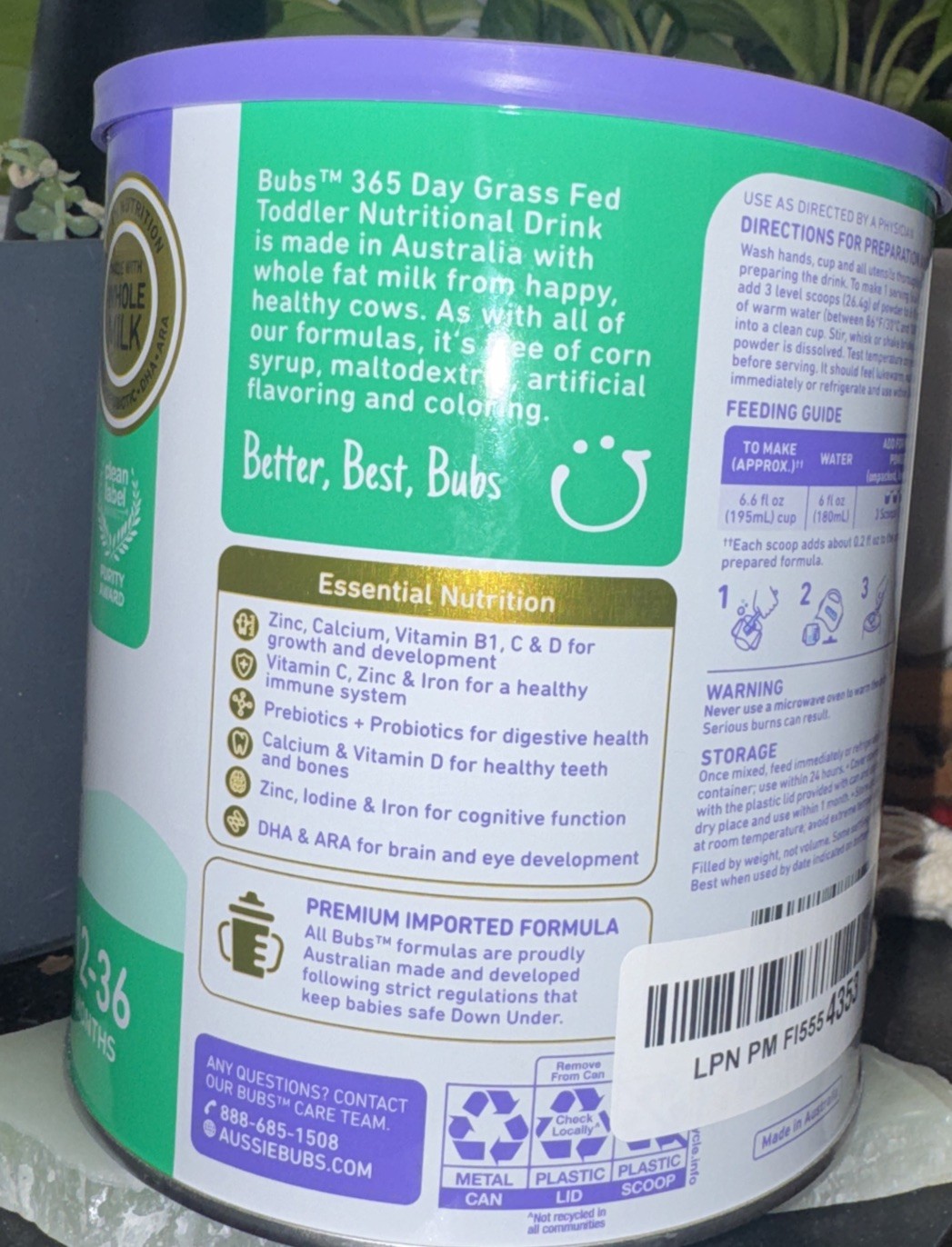 Bubs 365 Day Grass Fed Toddler Nutritional Drink 20oz EXP 03/27/2027 NEW