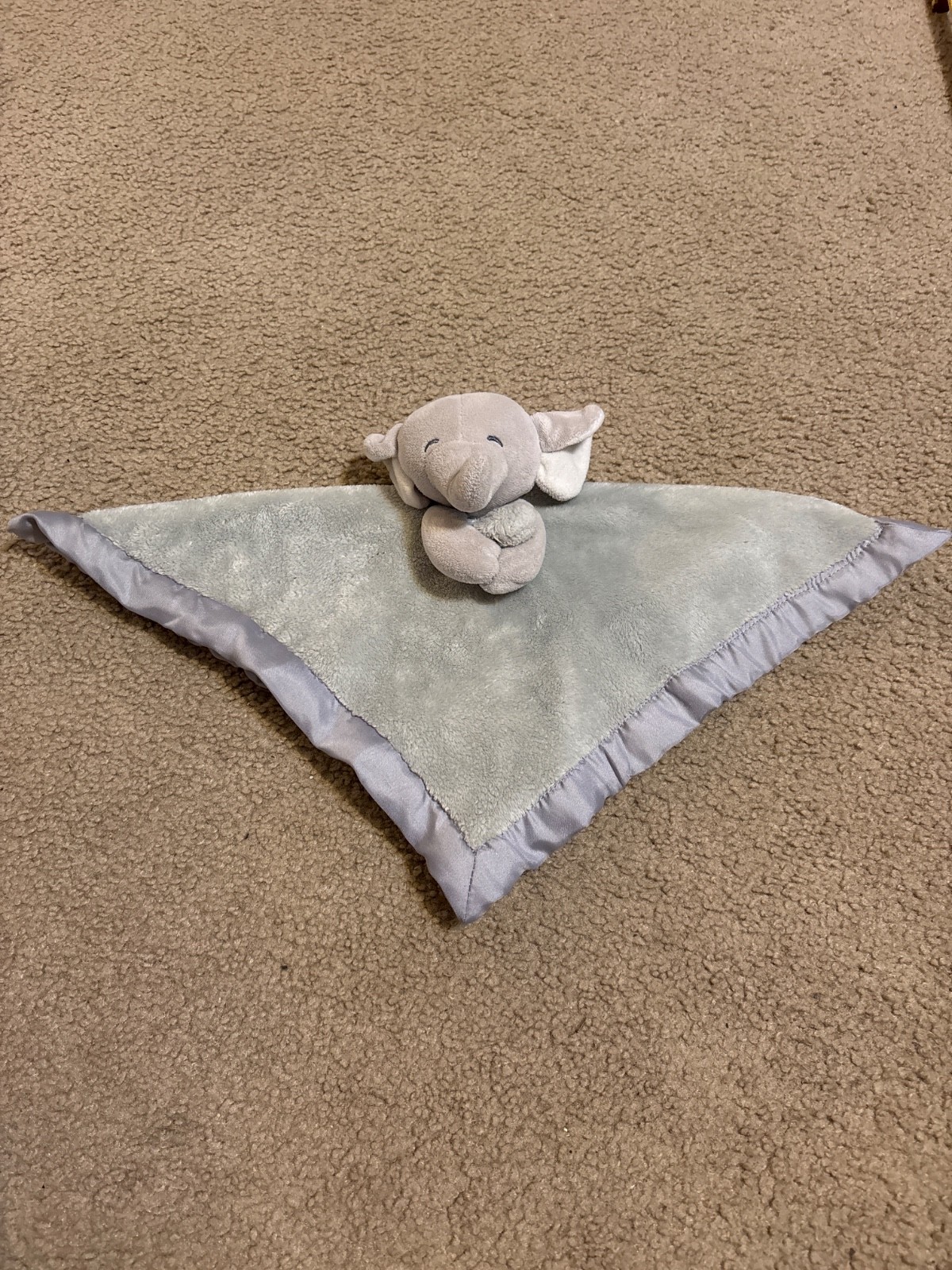 как выглядит Carters Gray Elephant Lovey Security Blanket Matte Satin Trim Soft фото