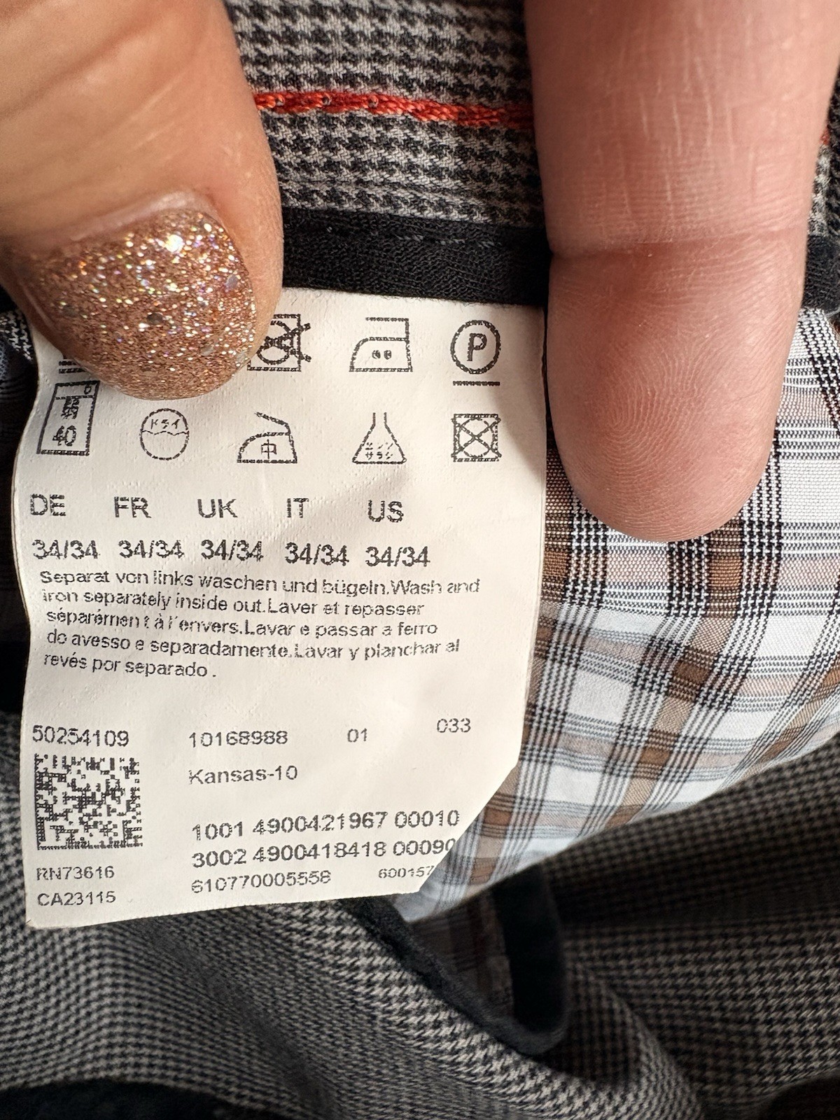 как выглядит Hugo Boss Casual Cotton/Poly Black White Check Casual Pants 34x34 Regular Fit фото