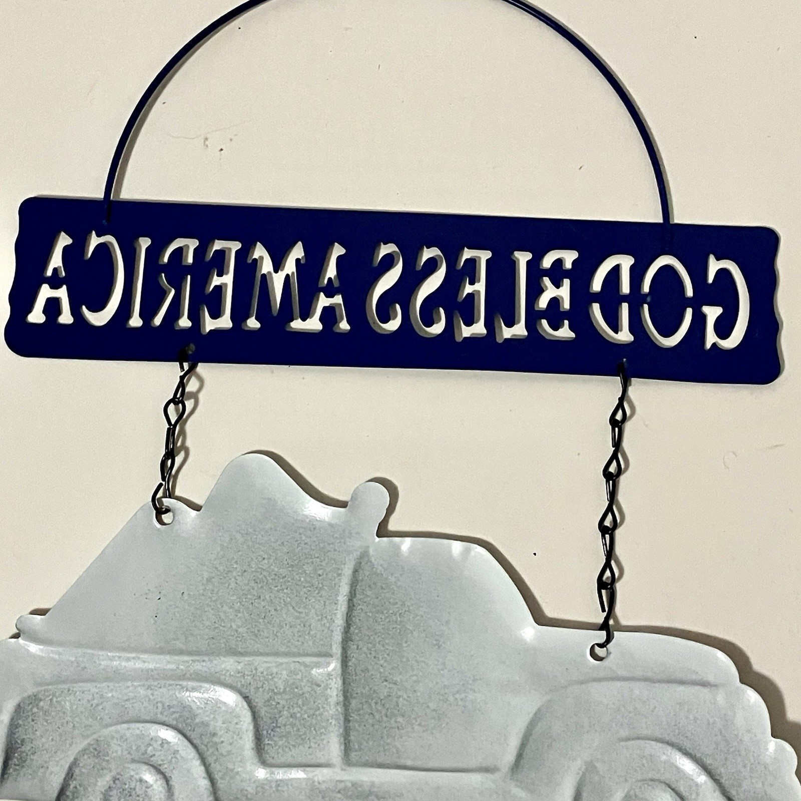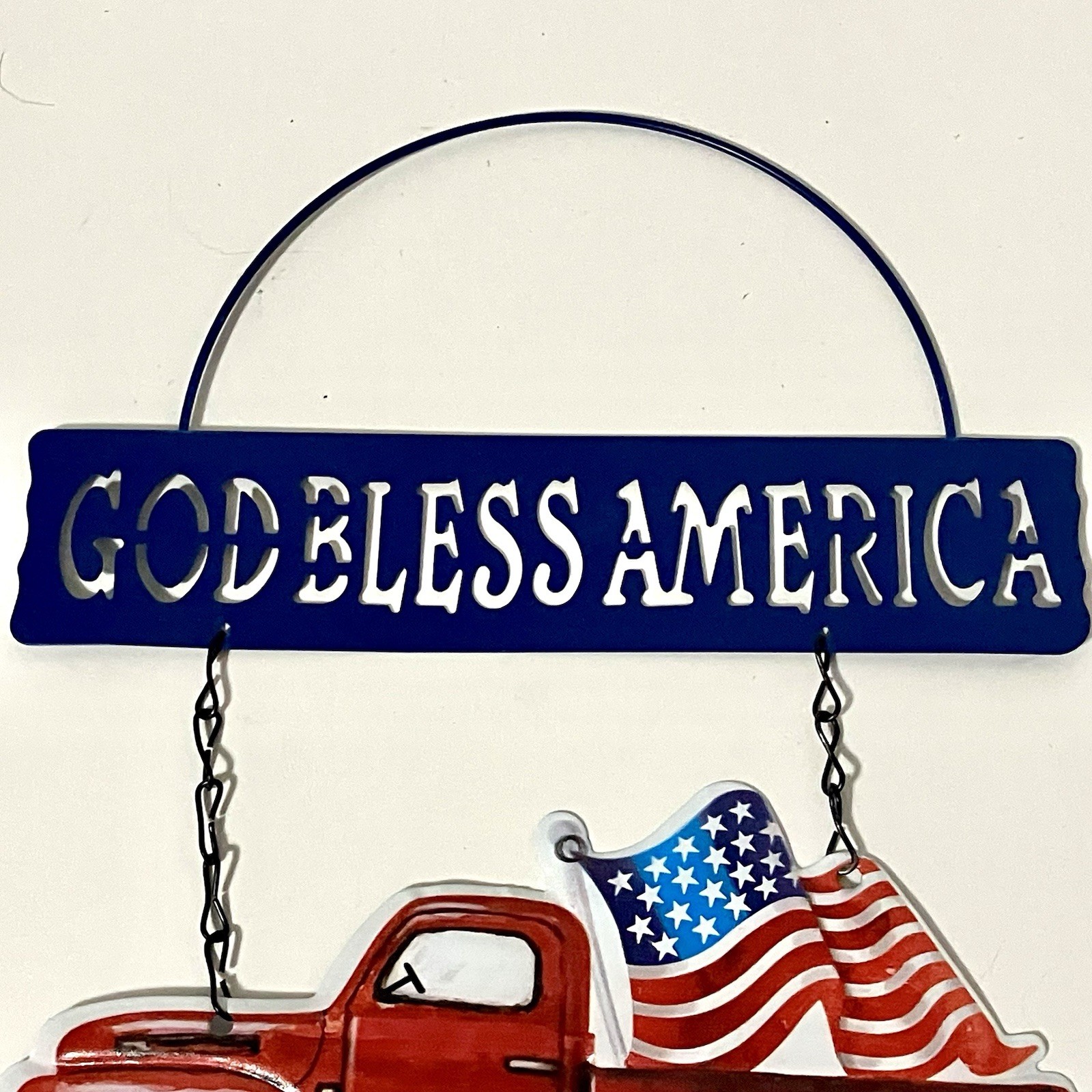 USA Truck Hanging Tin God Bless America 4th July Rustic Farmhouse Flag Americana