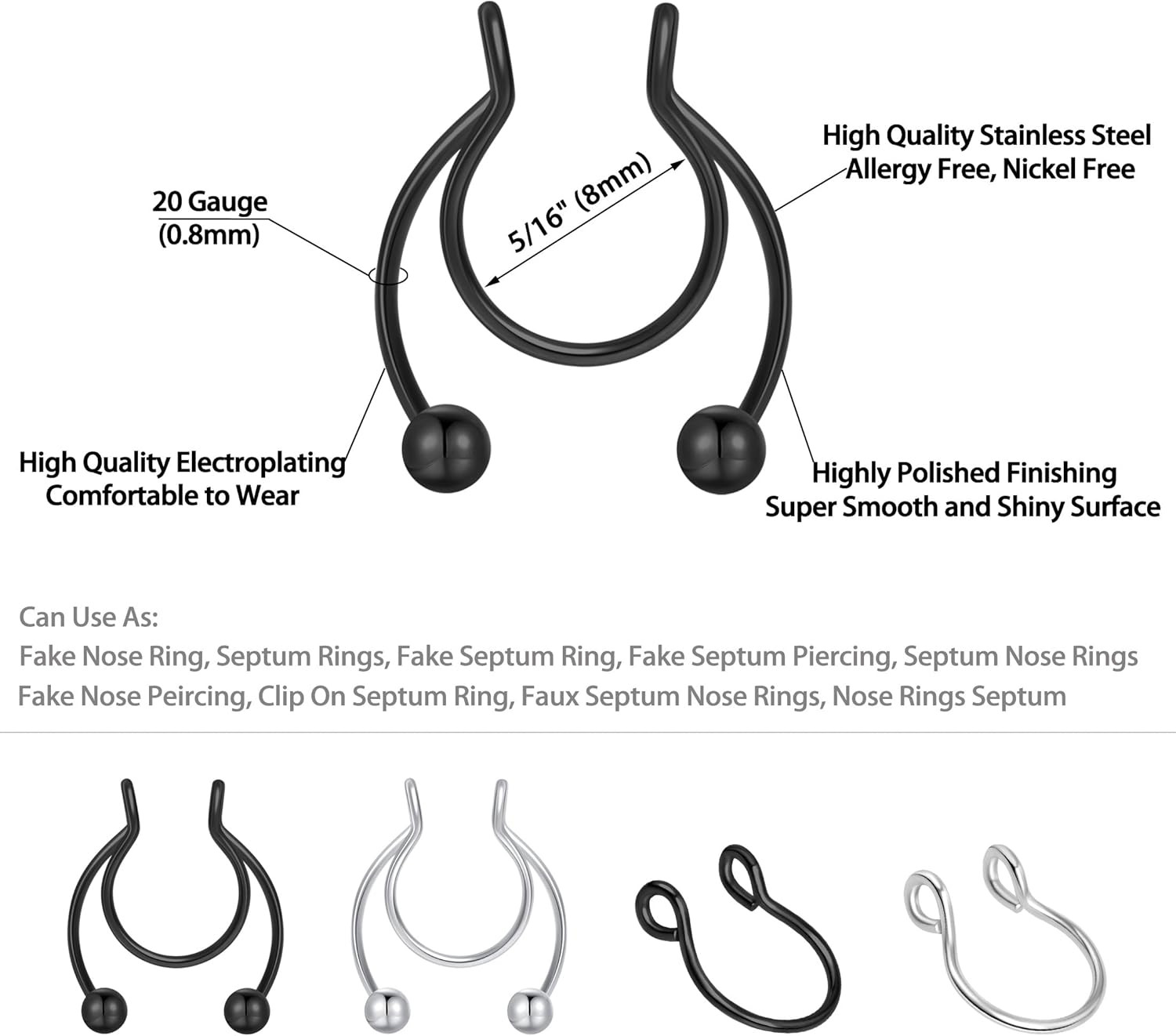 6-10 Pcs Nose Rings Hoops Nose Piercings Nose Piercing Jewelry Fake Nose Ring Fa