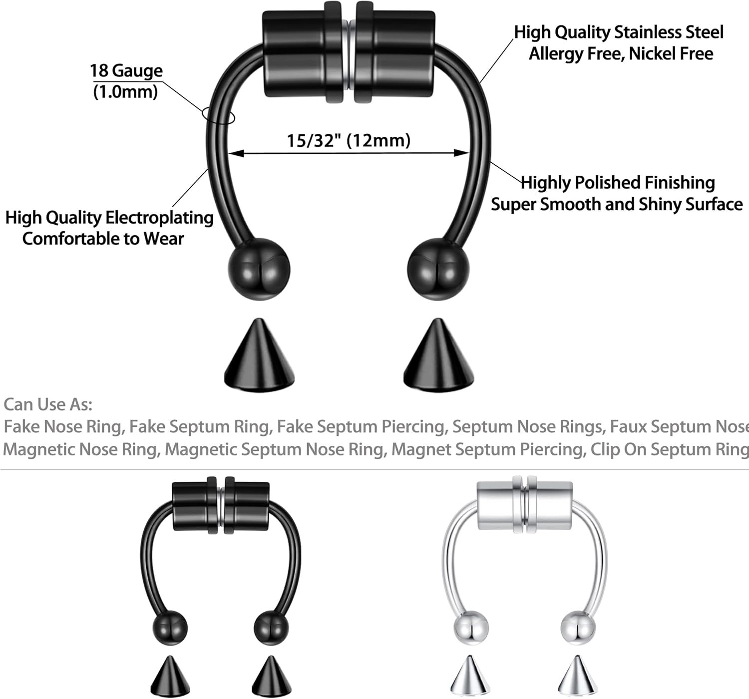 Стиль: A: 6Pcs Magnetic Septum Rings Set