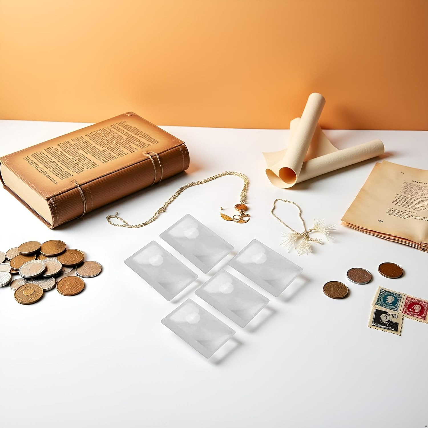 5 Pcs 3X Pocket Magnifier, Portable Fresnel Lens Credit Card Size Magnifying Gla