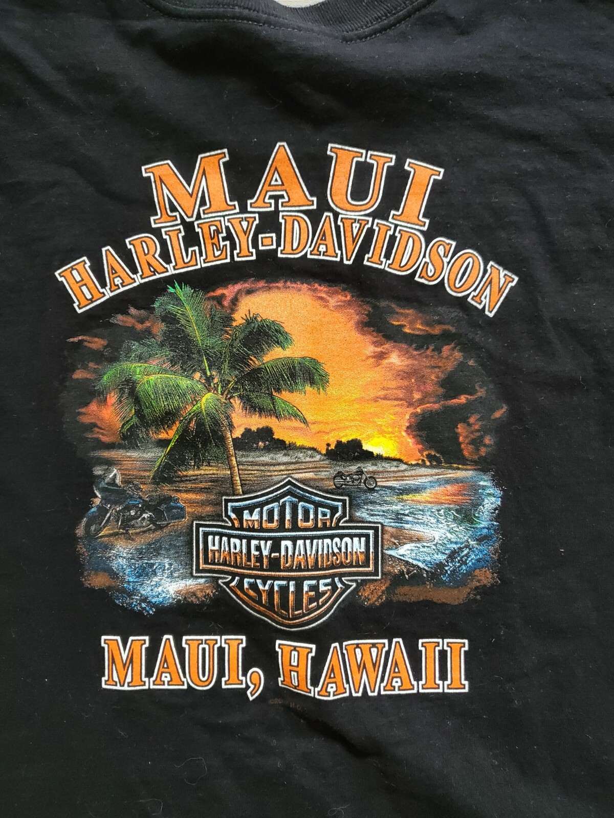 как выглядит Vintage Harley-Davidson Maui Hawaii Black T Shirt Black Mens Size Large фото
