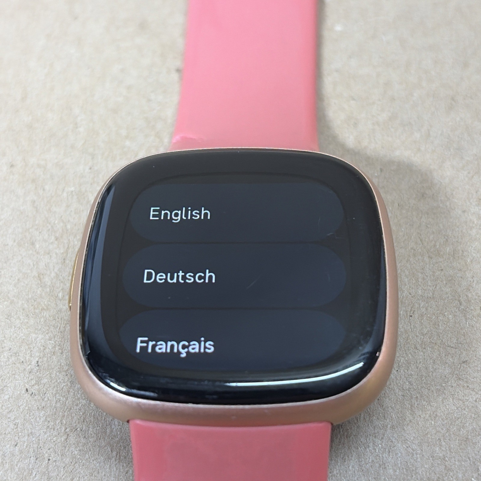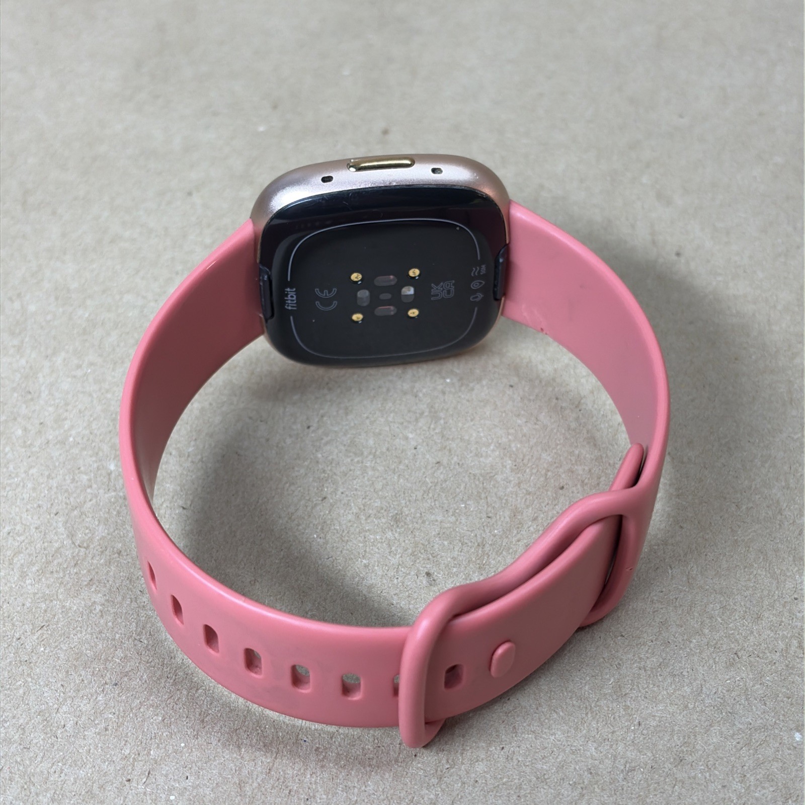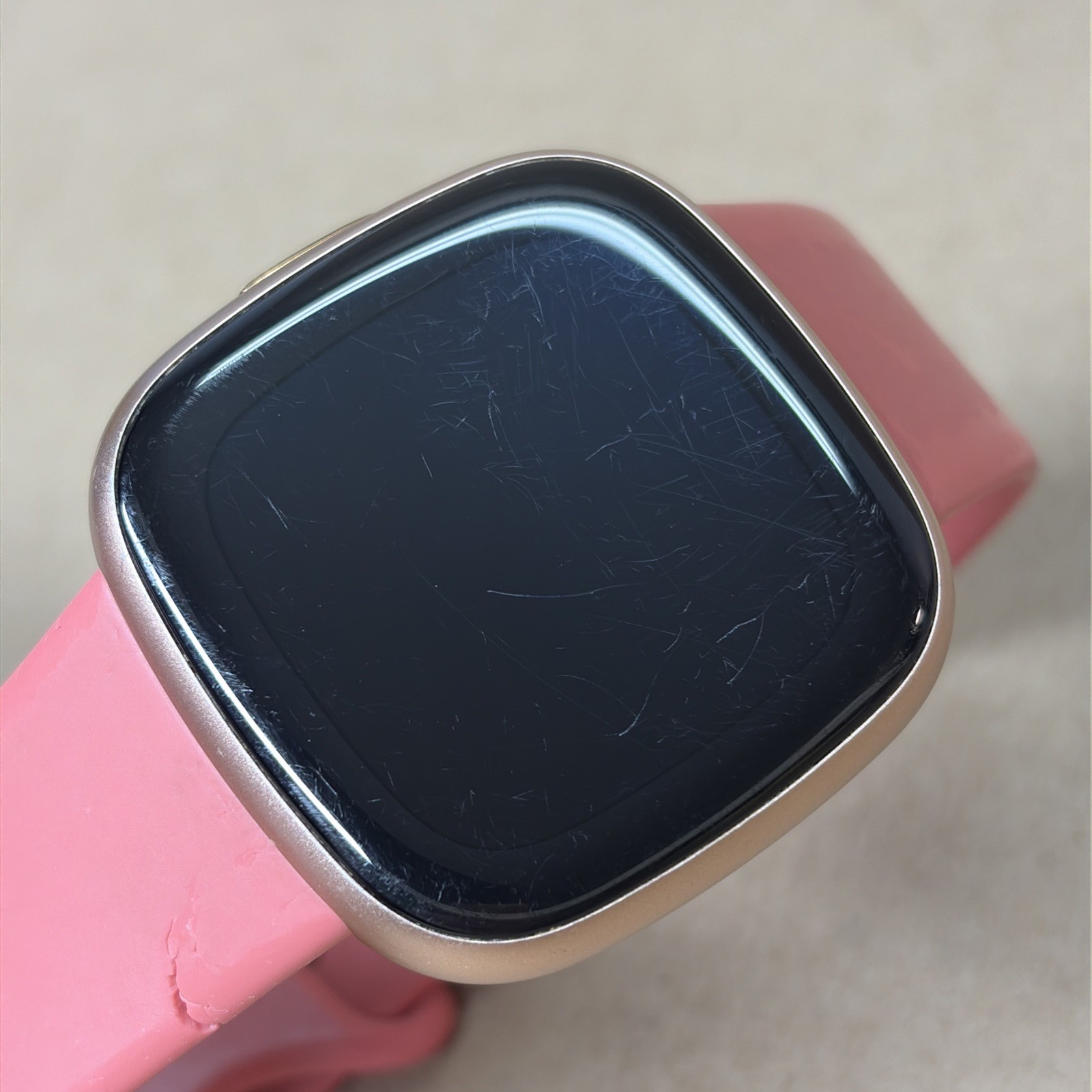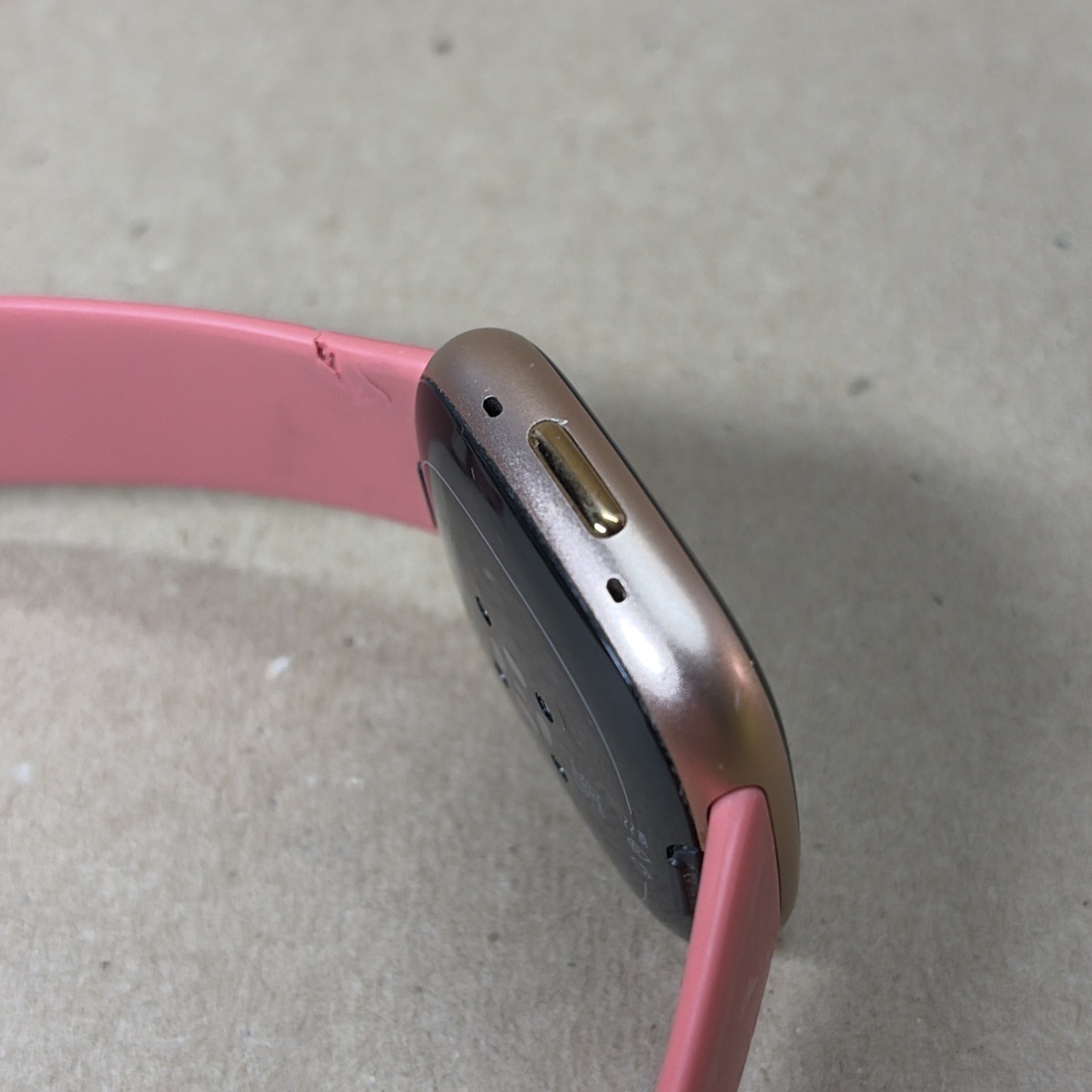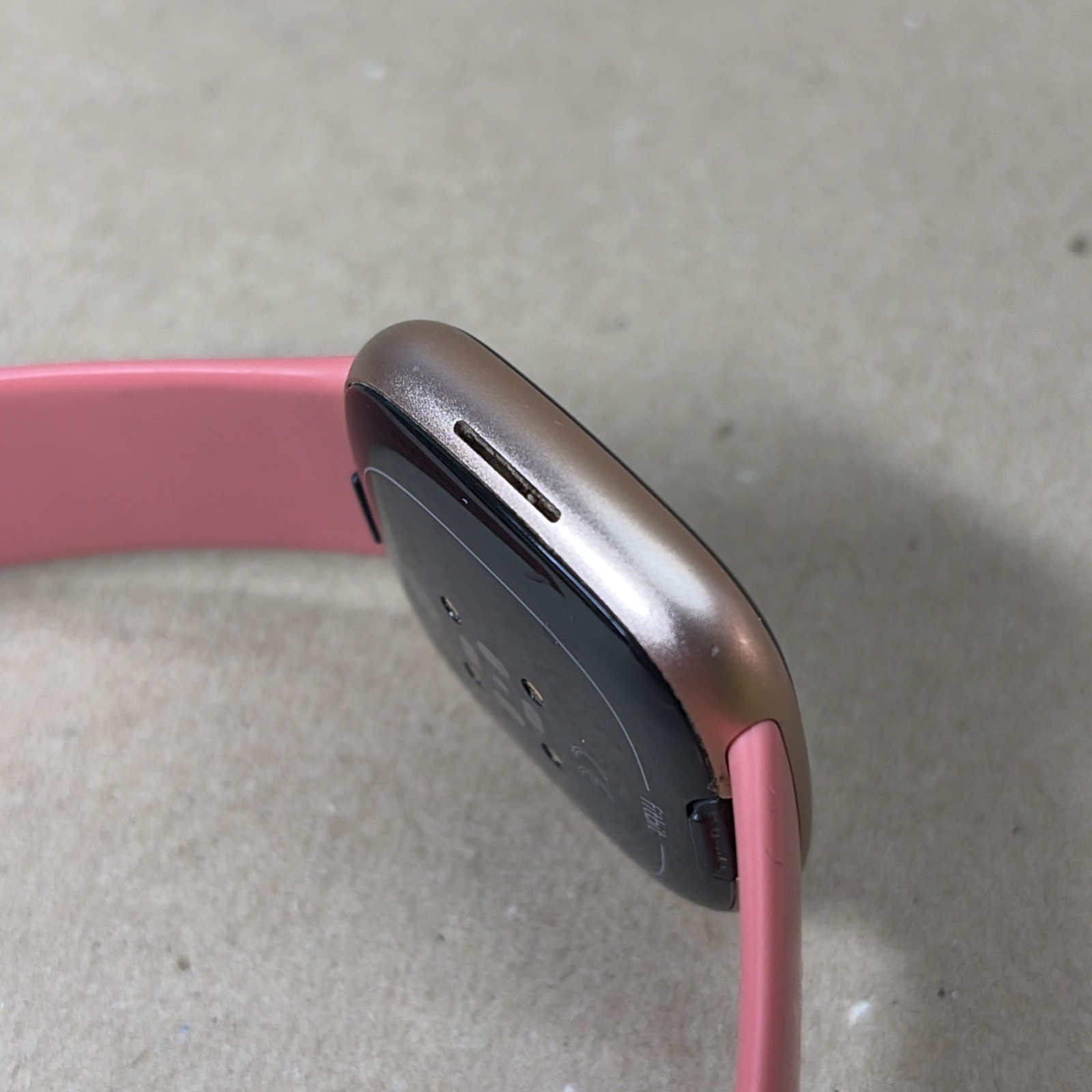 Fitbit Versa 4 Fitness Smartwatch FB523 Copper Rose Aluminum Pink RIPPED Band