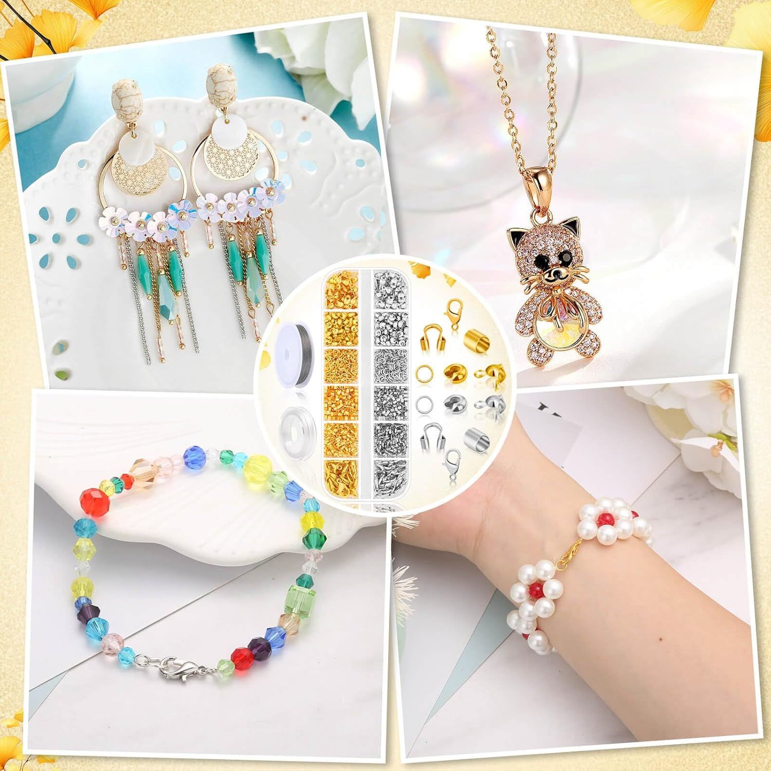 как выглядит 1200Pcs Crimp Beads Supplies for Jewelry Making, Including Crimp covers, Crimp T фото