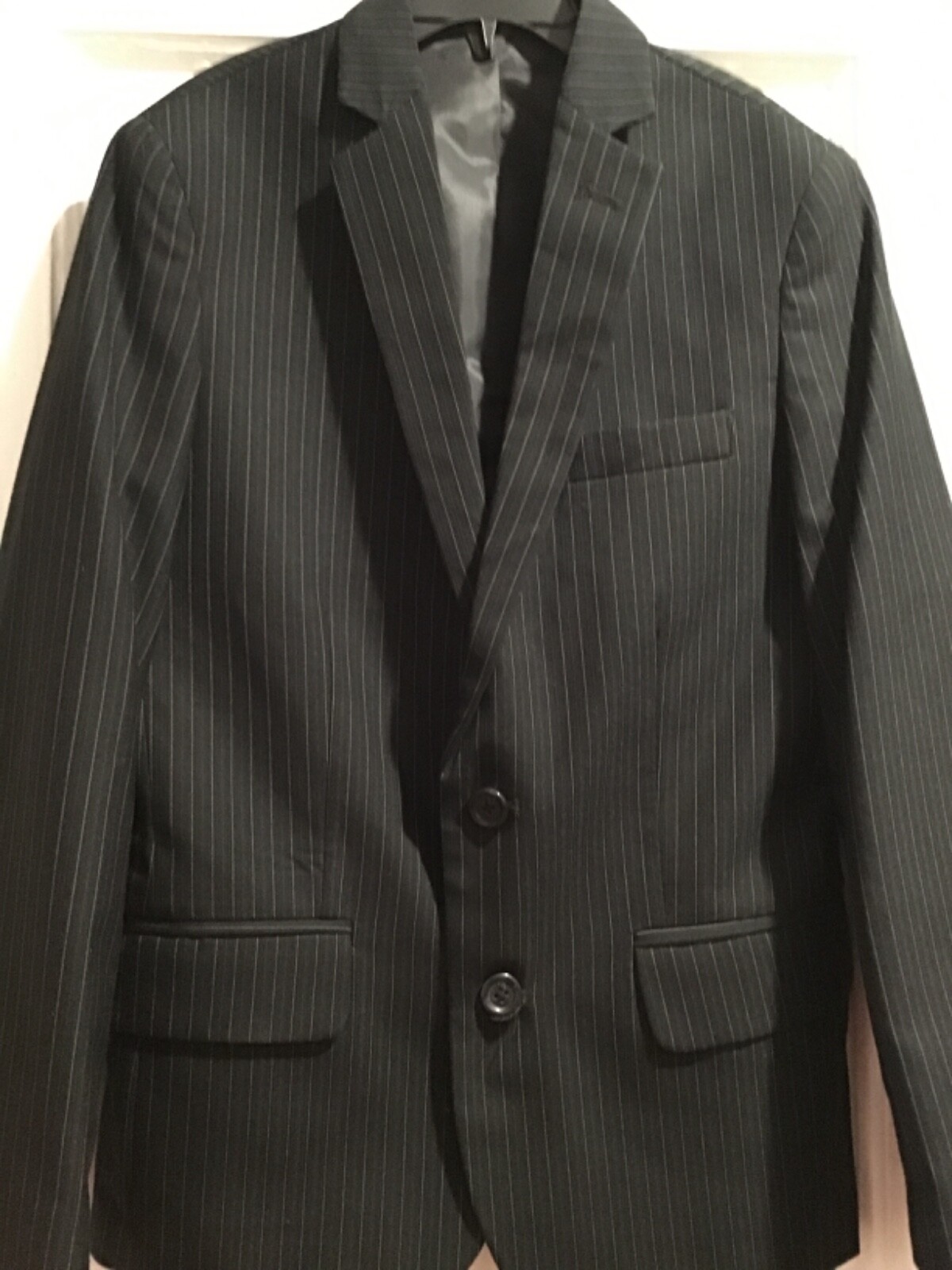 как выглядит Calvin Klein Boys single breasted 2 Button Black Pin Striped Sportcoat Sz 10 фото