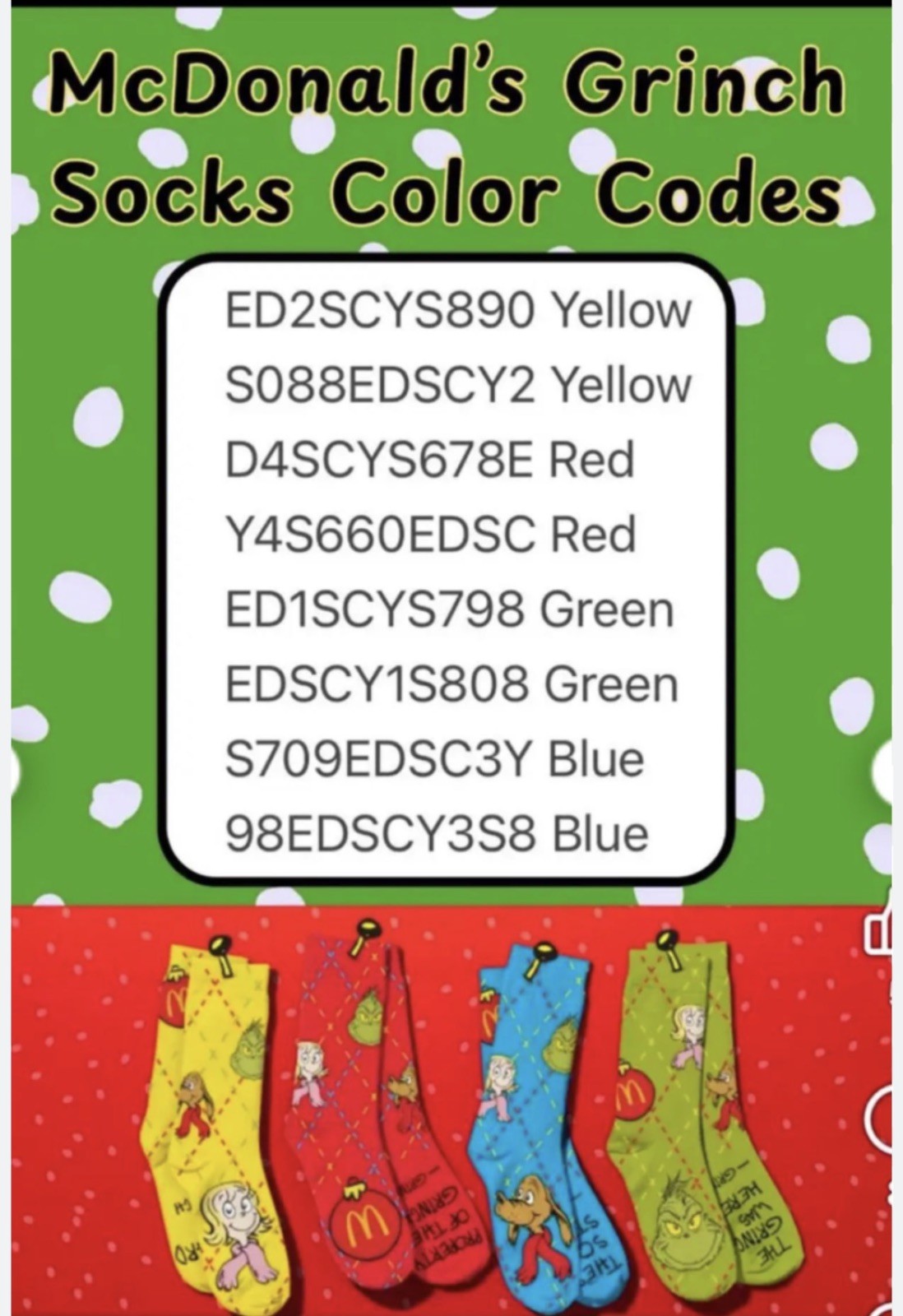 SEALED Package of McDonald s The Grinch Meal Yellow Socks