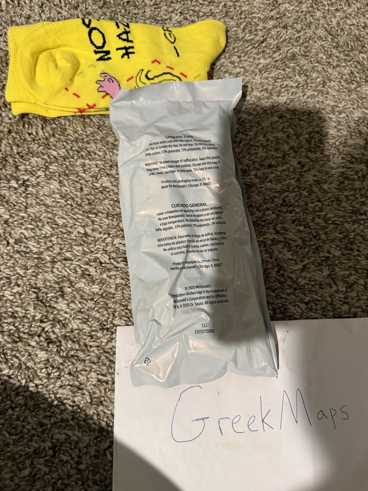 как выглядит SEALED Package of McDonald s The Grinch Meal Yellow Socks фото