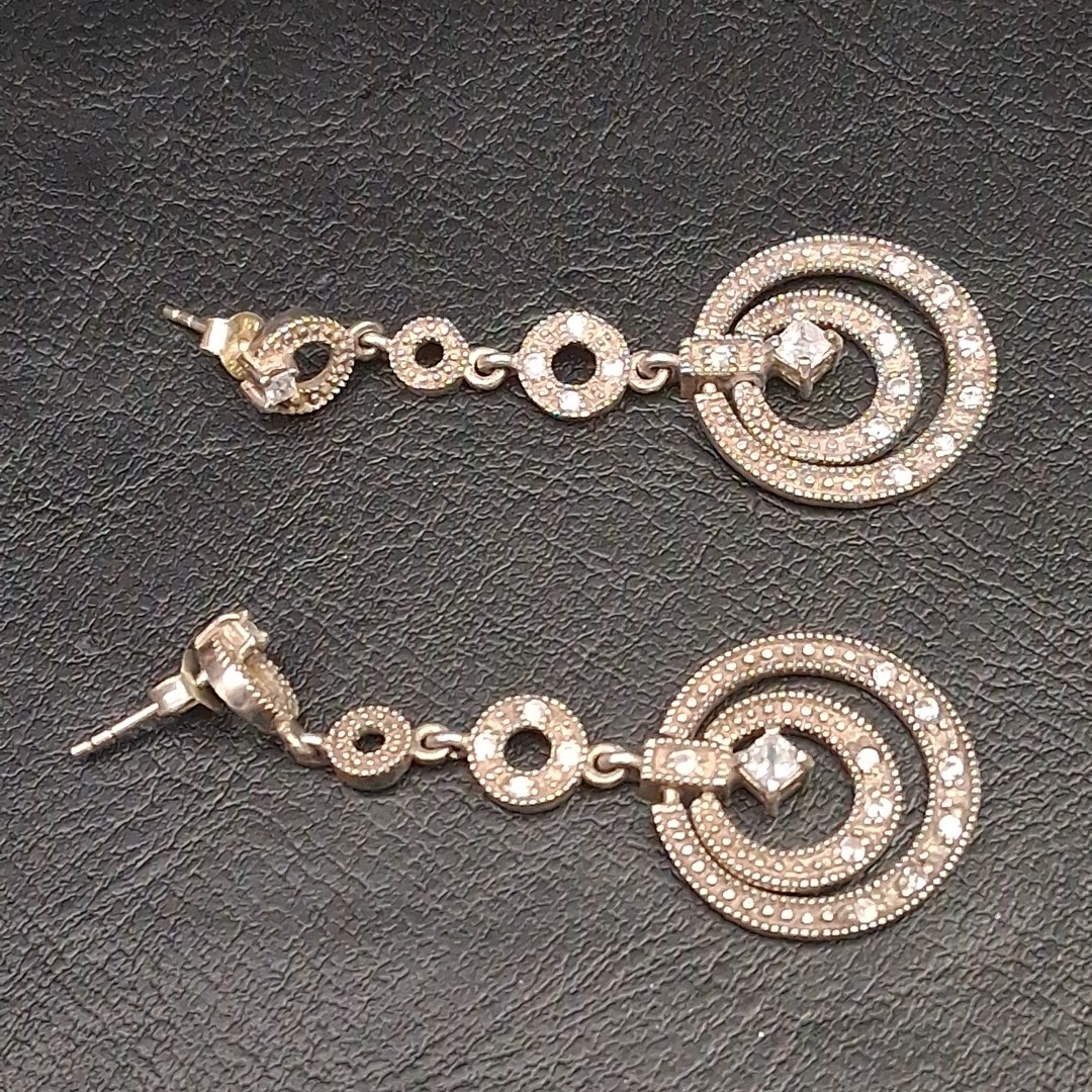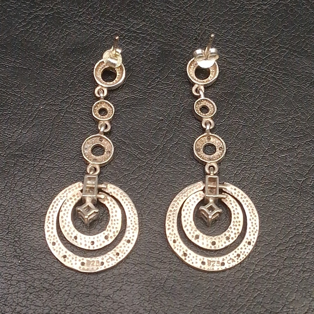 STERLING SILVER 925 Dangle Circles Pierced Earrings Whit Cubic Zirconia. 17.049