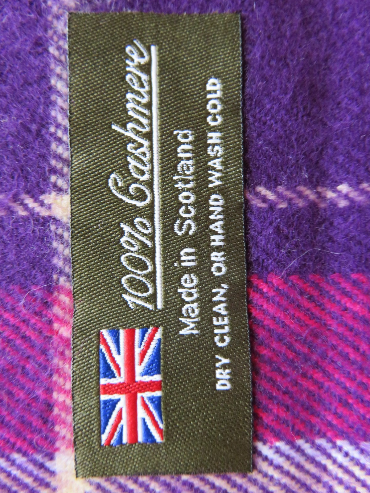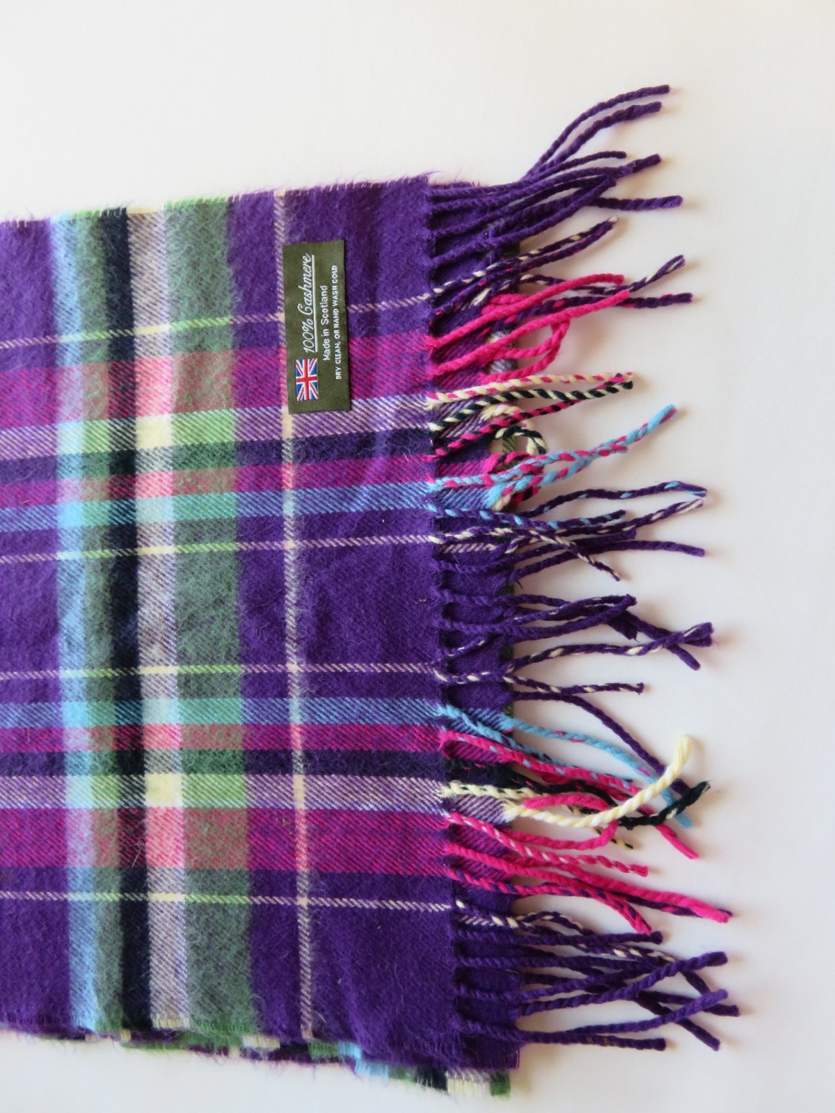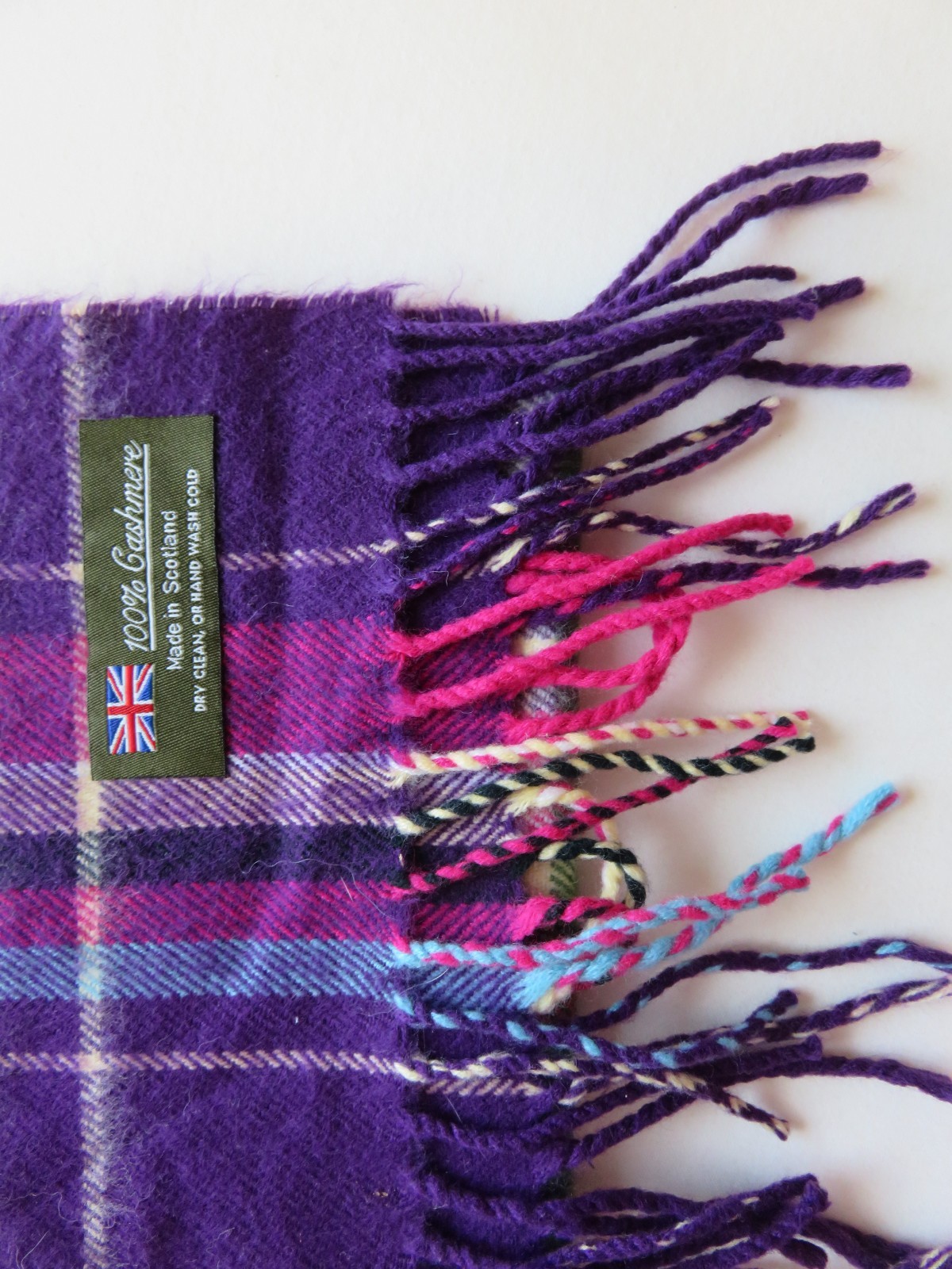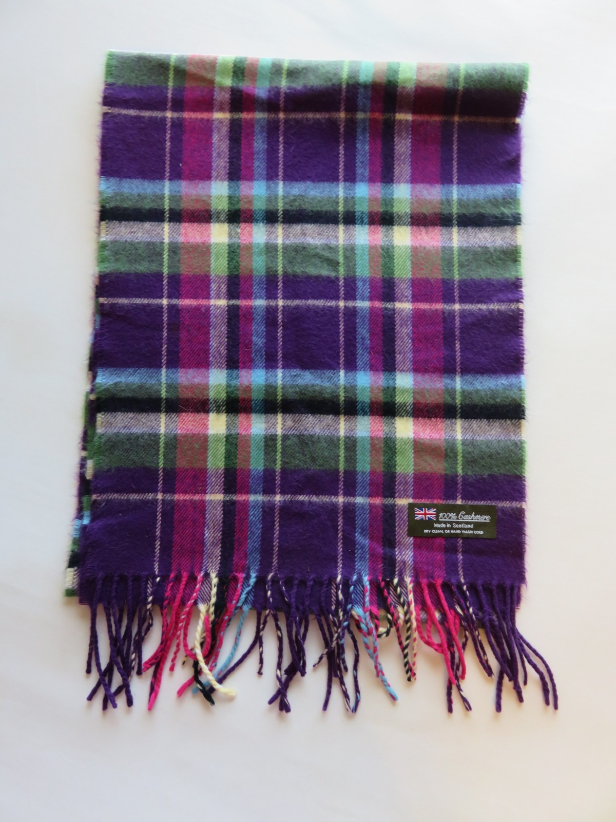 100 CASHMERE Made In SCOTLAND Check Plaid Tartan Long Scarf Fringe