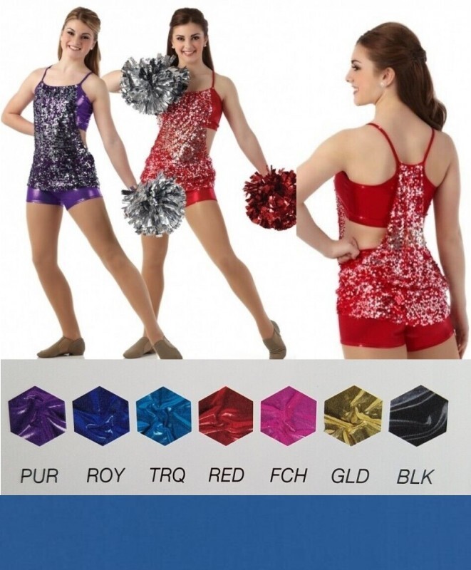Hot Stuff BLUE Child 6x7 Dance Team Costume Foil Sequin Top Shorts New