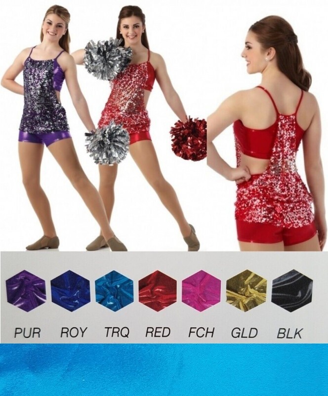 Hot Stuff TURQUISE Child Large Dance Team Costume Foil Sequin Top Shorts New
