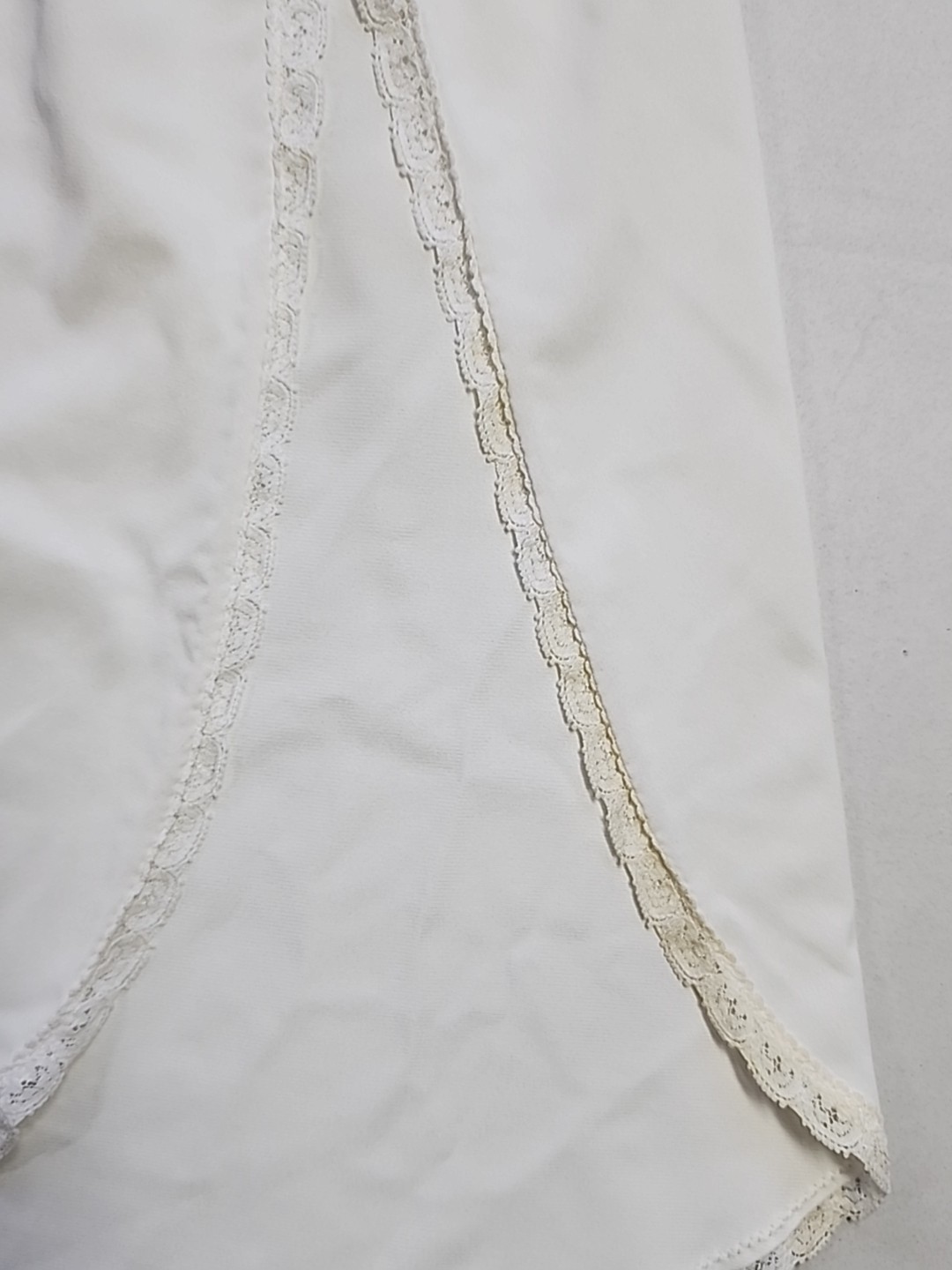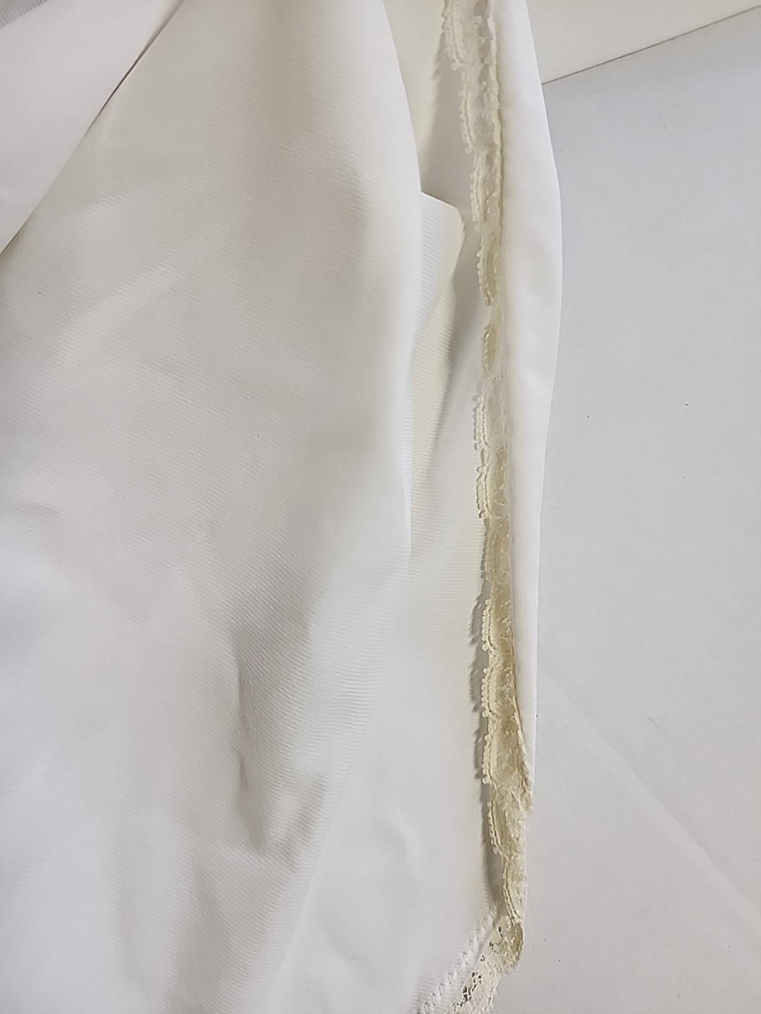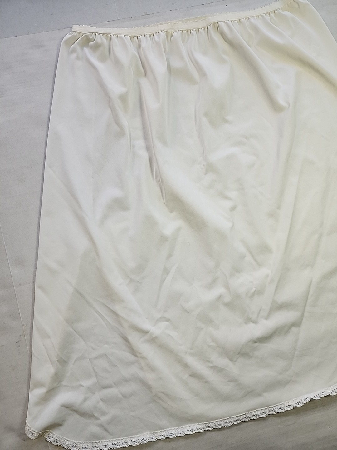Shadowline Womens Large Satin Nylon Off White HALF SLIP Skirt Lace Hem Slit