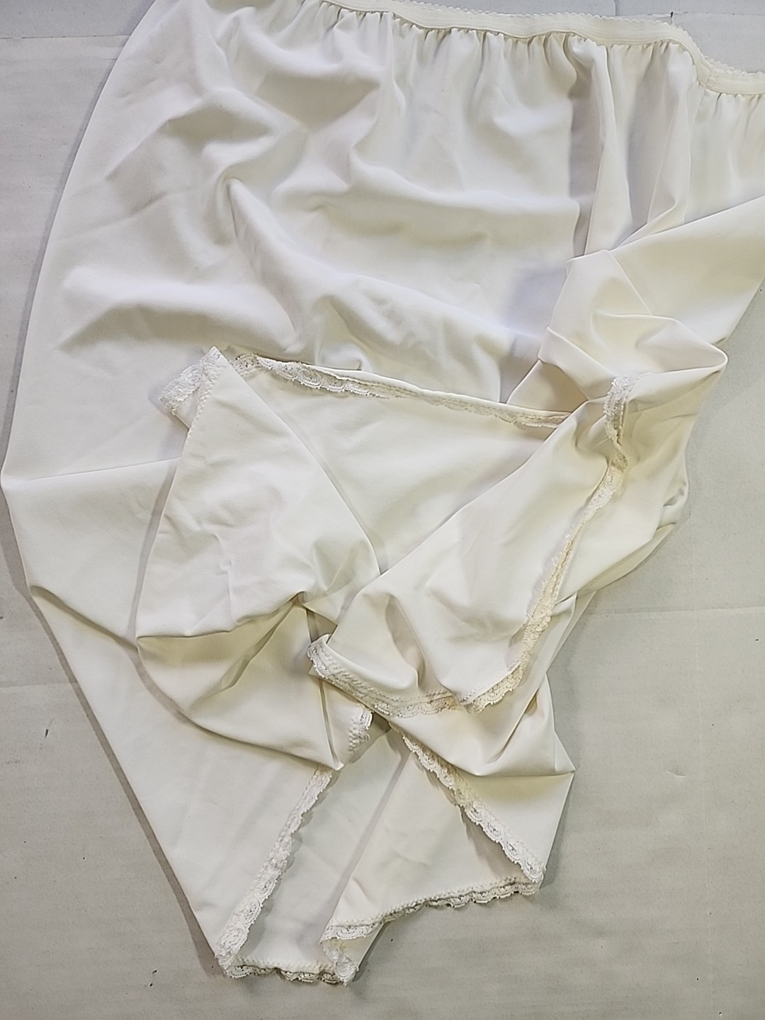 как выглядит Shadowline Womens Large Satin Nylon Off White HALF SLIP Skirt Lace Hem Slit фото