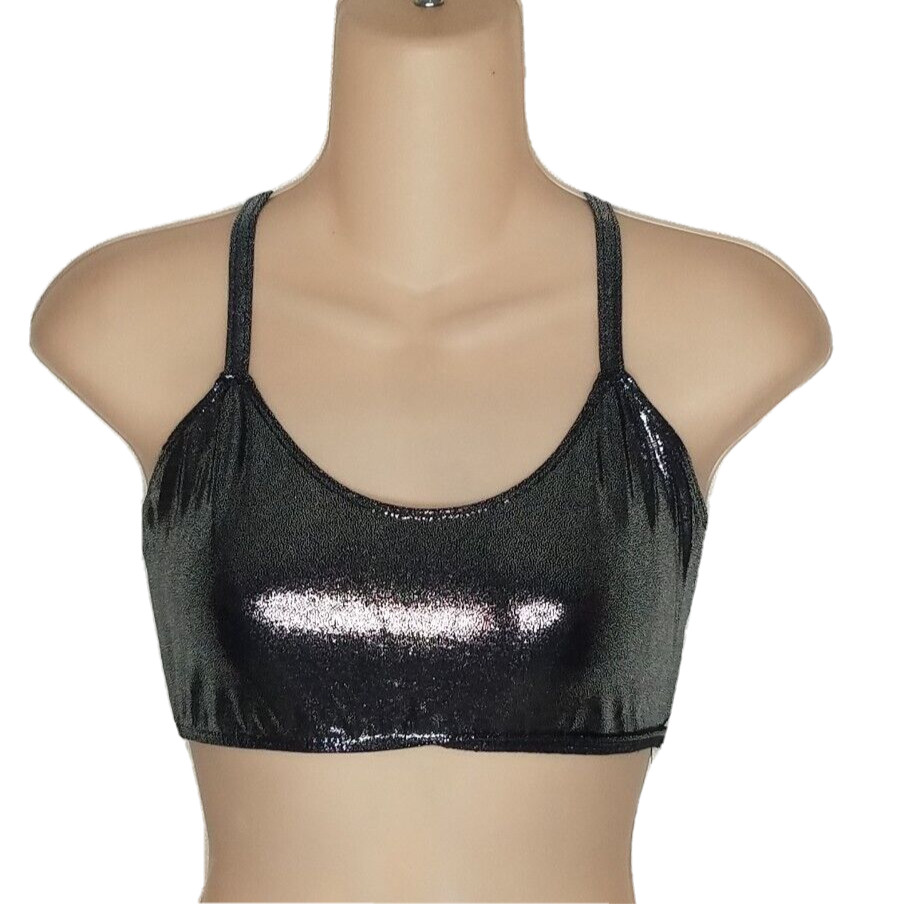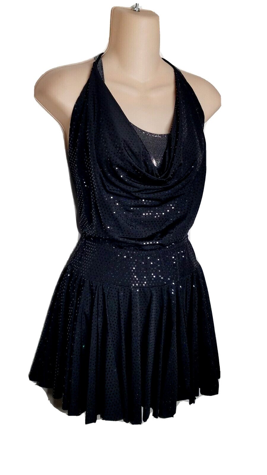 Vision BLACK Adult Small Dance Costume Skating Tap Sequin Dress with Bra Top New