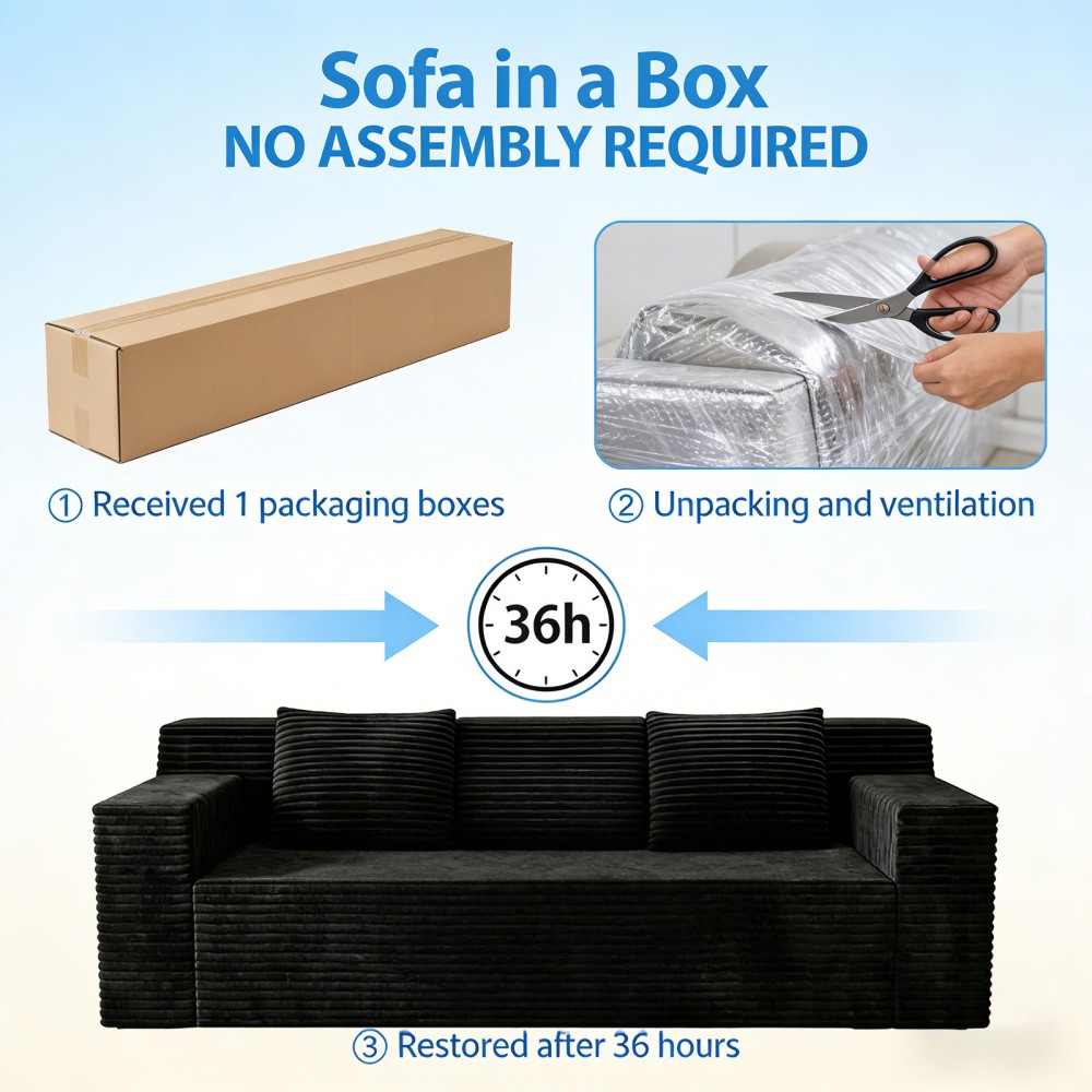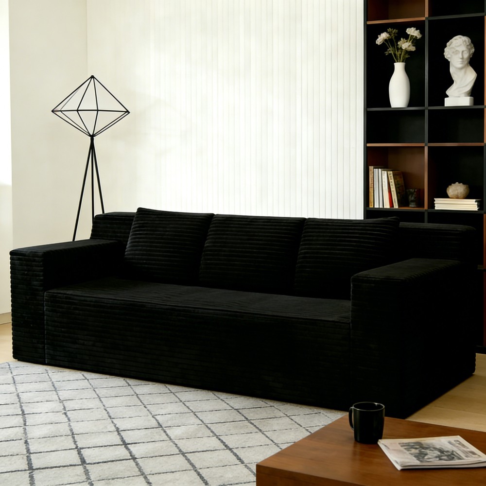 3 Seat Corduroy Modular L Shaped Sectional Sofa, No Assembly