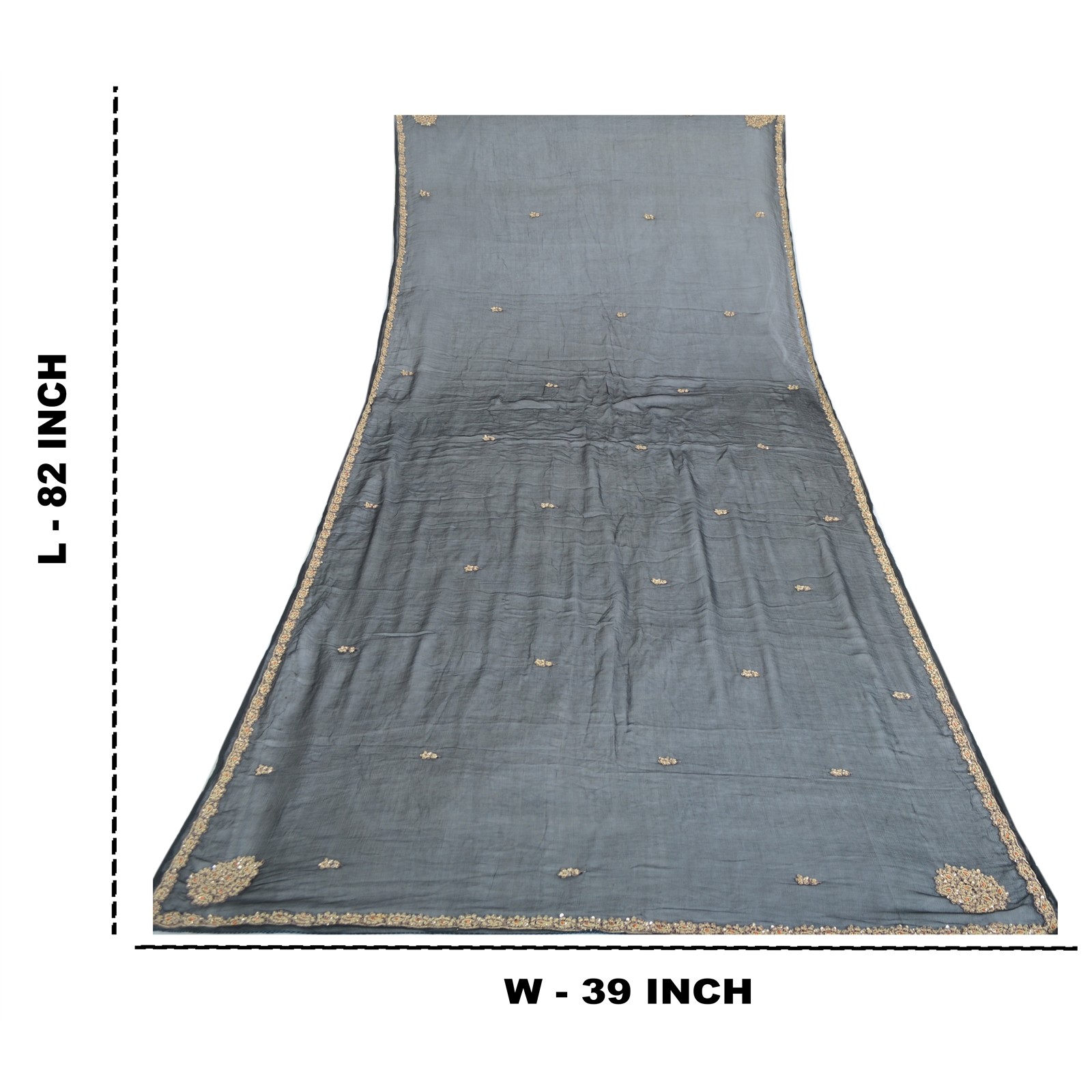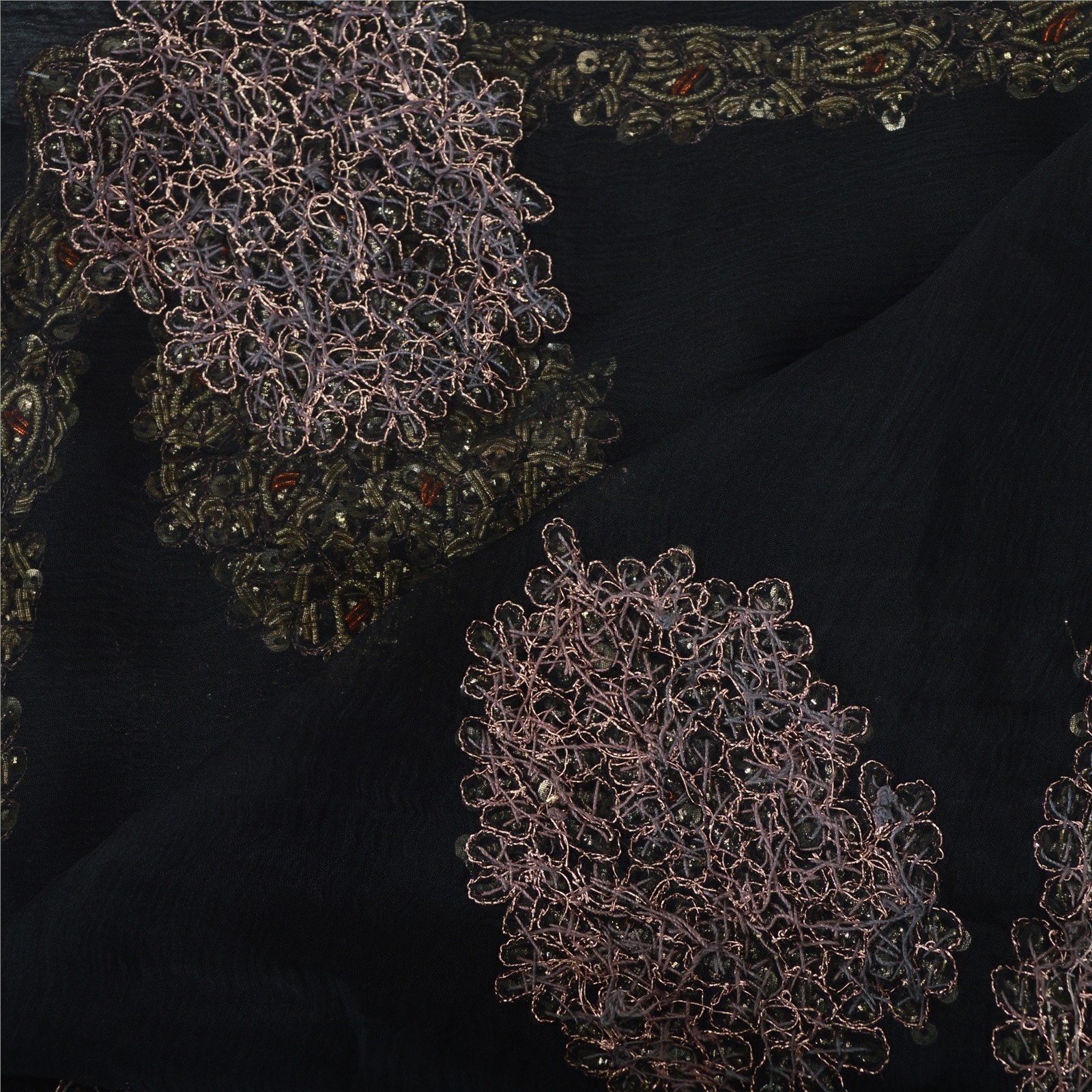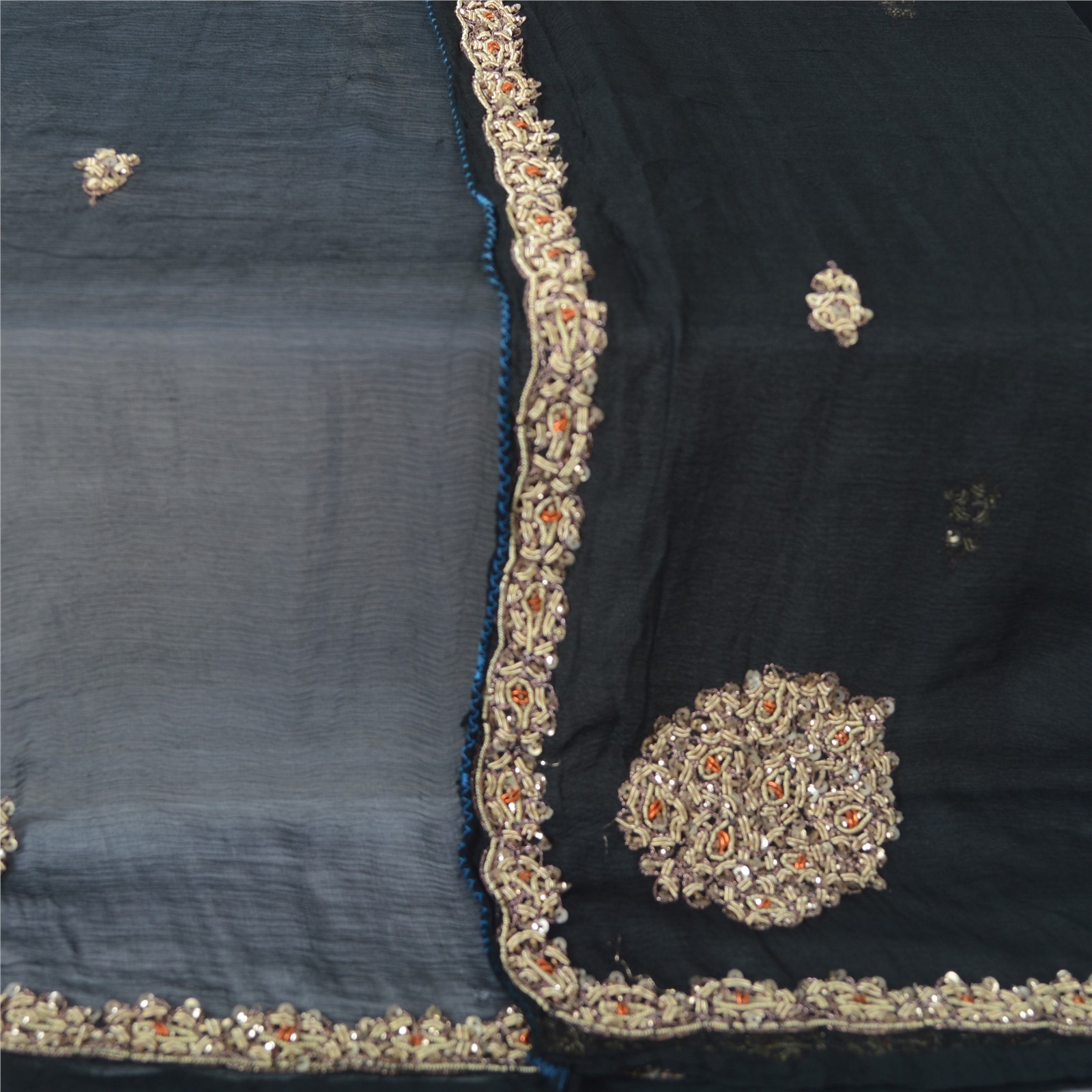 Sanskriti Vintage Black Dupatta Long Stole Pure Chiffon Hand Beaded Scarves/Veil