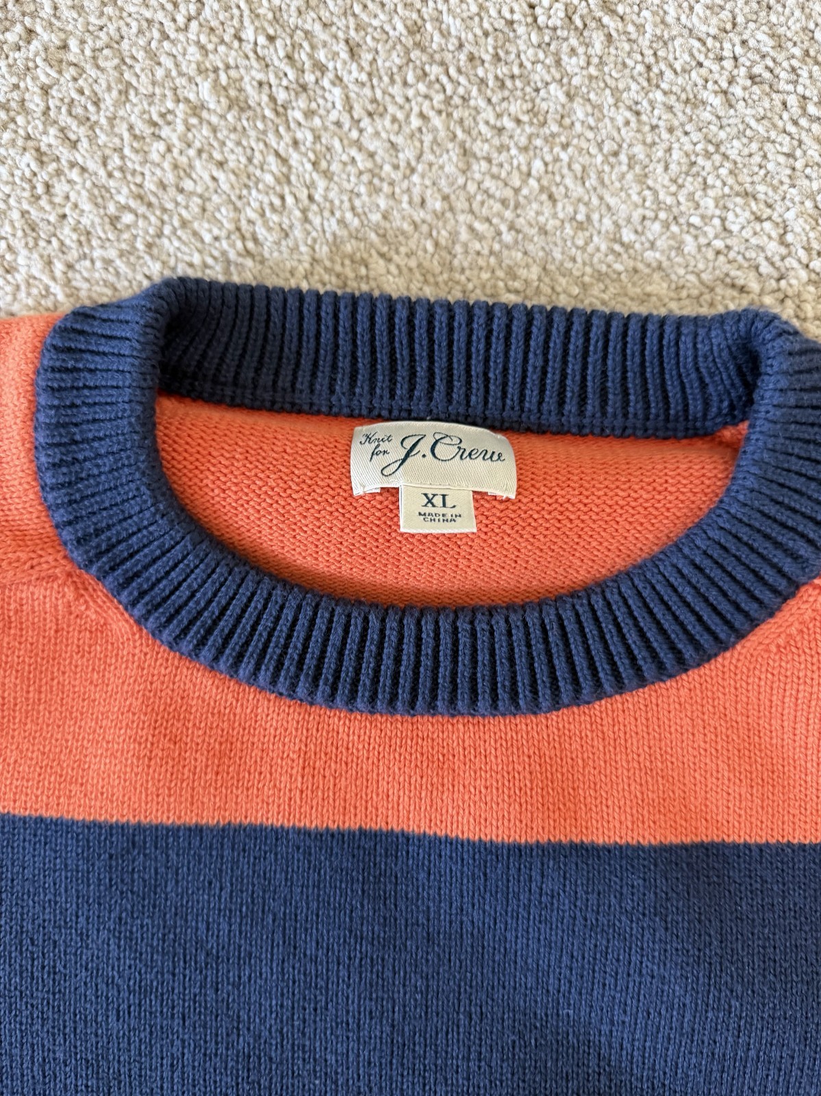 J.Crew Heritage Mens XL Orange/Blue Striped Cotton Sweater. EUC