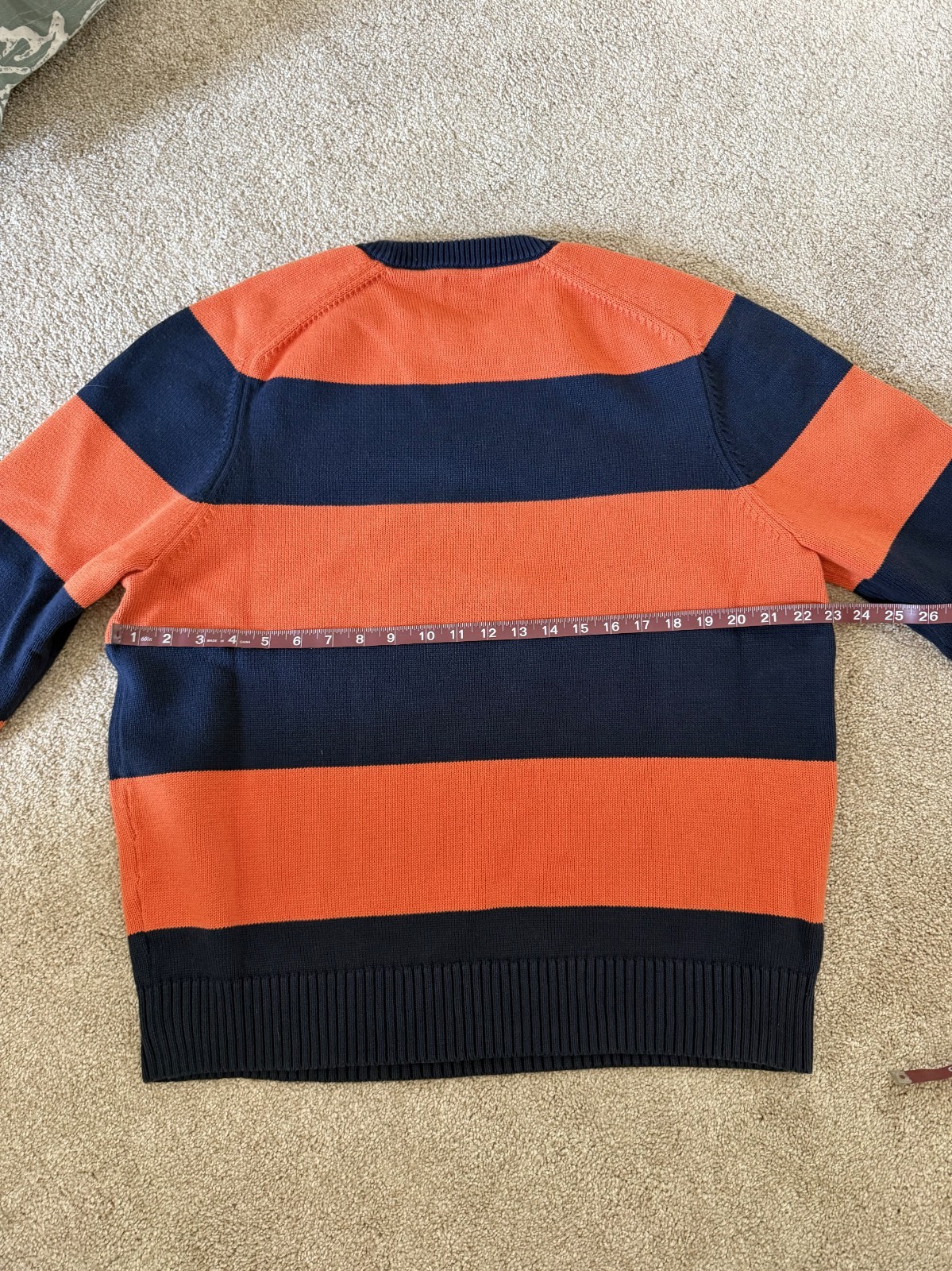 как выглядит J.Crew Heritage Mens XL Orange/Blue Striped Cotton Sweater. EUC фото