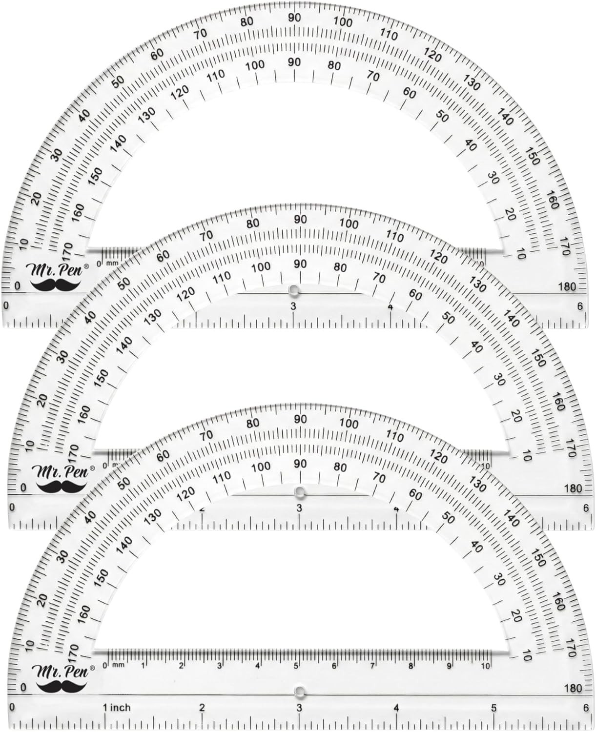 как выглядит 6-Inch Clear Plastic Protractor 3 Pack for Geometry - Precision Measuring Tool фото