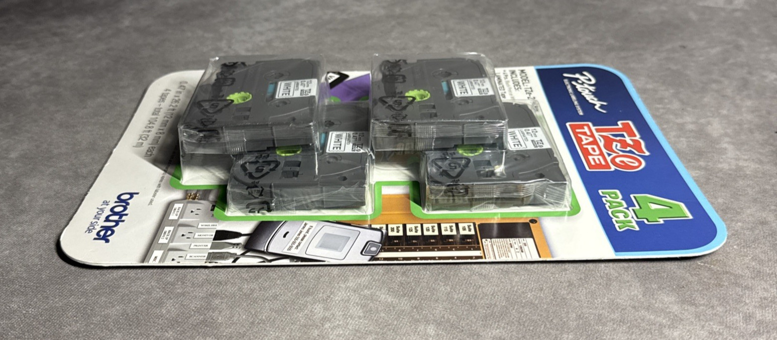 Brother P-Touch 4-Pack Black on White Label Tape TZ TZe Compatible 1/2 12mm